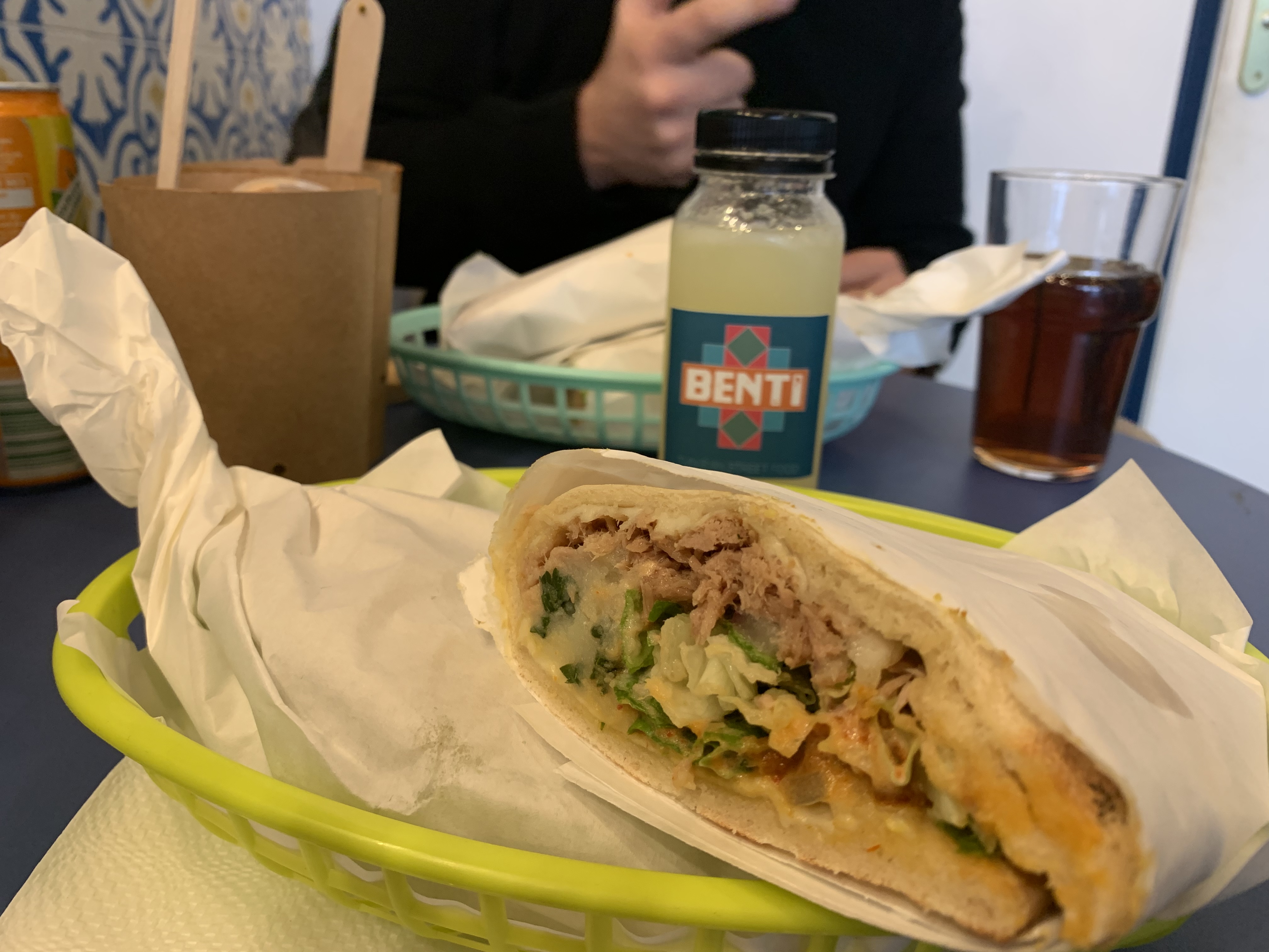 Un délice ! je suis tombée par hasard sur Benti, quelle belle surprise : on sort des sandwichs classiques, c'est un festival de saveurs, il y a du choix, les desserts sont top, l'accueil chaleureux..Bref une très bonne adresse.