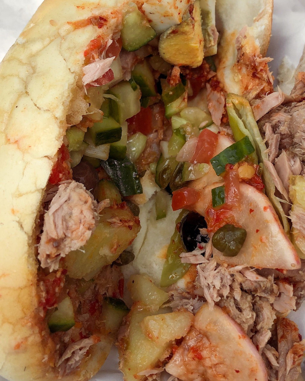Déception.... Je voulais retrouver les saveurs de mon enfance, j ai manger pour 8€ à emporter du pain industriel, thon en boîte et aucune saveur et fraîcheur des légumes... Attention aux olives avec noyaux dans le sandwich. Je ne conseille donc pas ....
