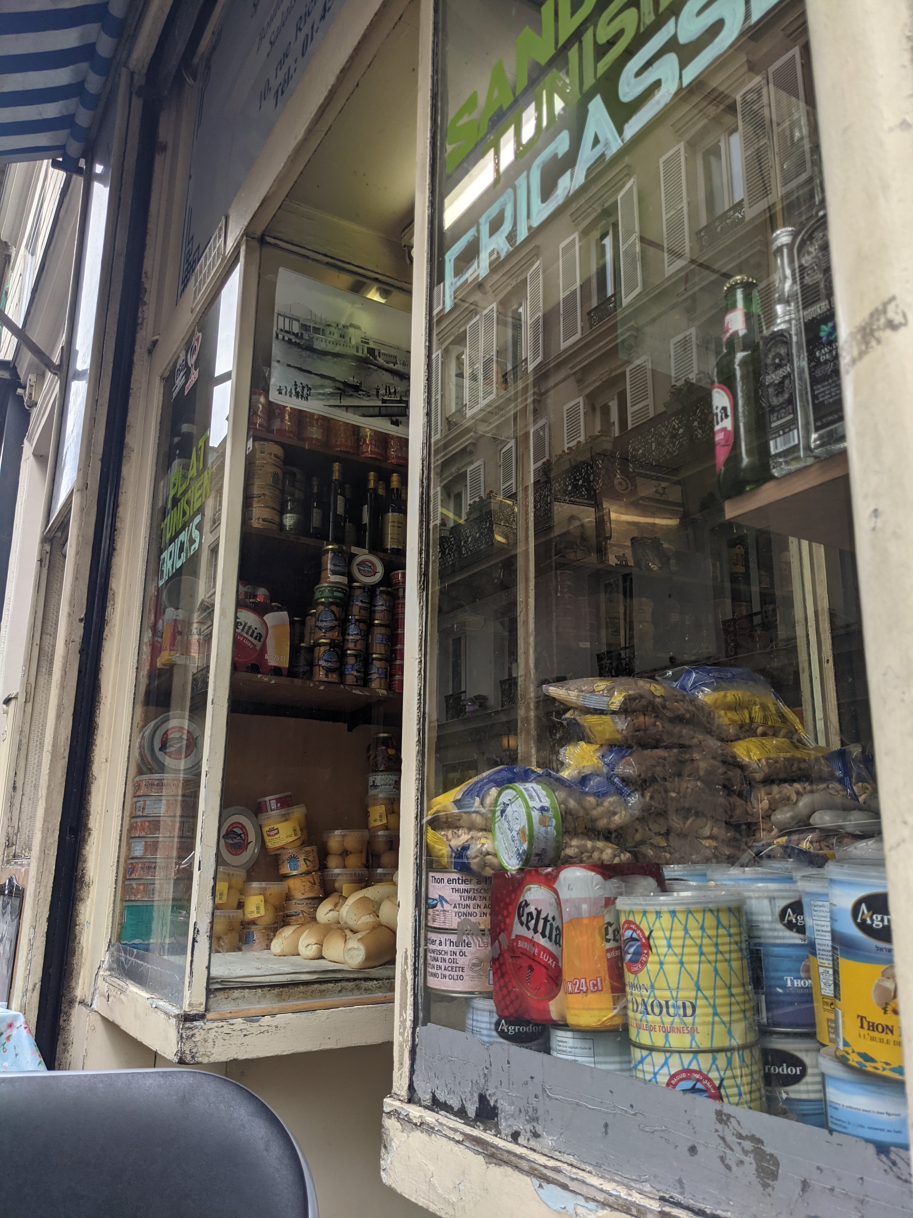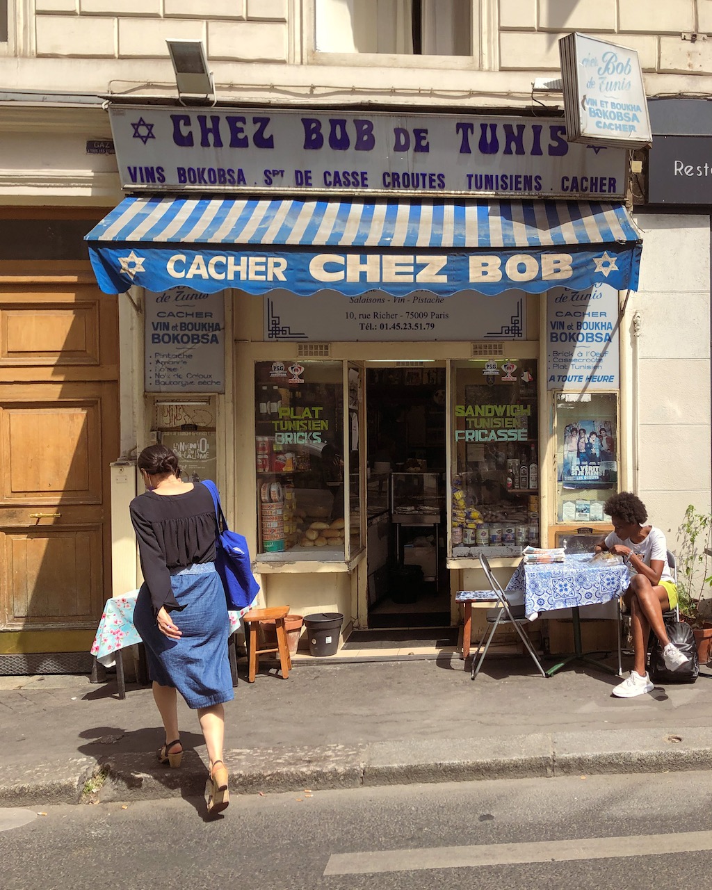 Le lieu est une petite épicerie située au centre de Paris. Le propriétaire Bob est un juif tunisien qui propose au déjeuner quelques spécialités de son pays natal comme la fricasse (fraîchement farcie) et la brique. L'environnement est très simple, il n'y a que deux tables avec un total de 4-5 chaises, pourtant c'est un lieu plein de charme avec une identité bien particulière et ce n'est pas un hasard si la clientèle ne manque pas. Pourtant l'ambiance est très décontractée et les propriétaires sont très accueillants. Recommandé pour ceux qui veulent essayer quelque chose de différent et en dehors des circuits touristiques habituels. Des prix vraiment populaires.