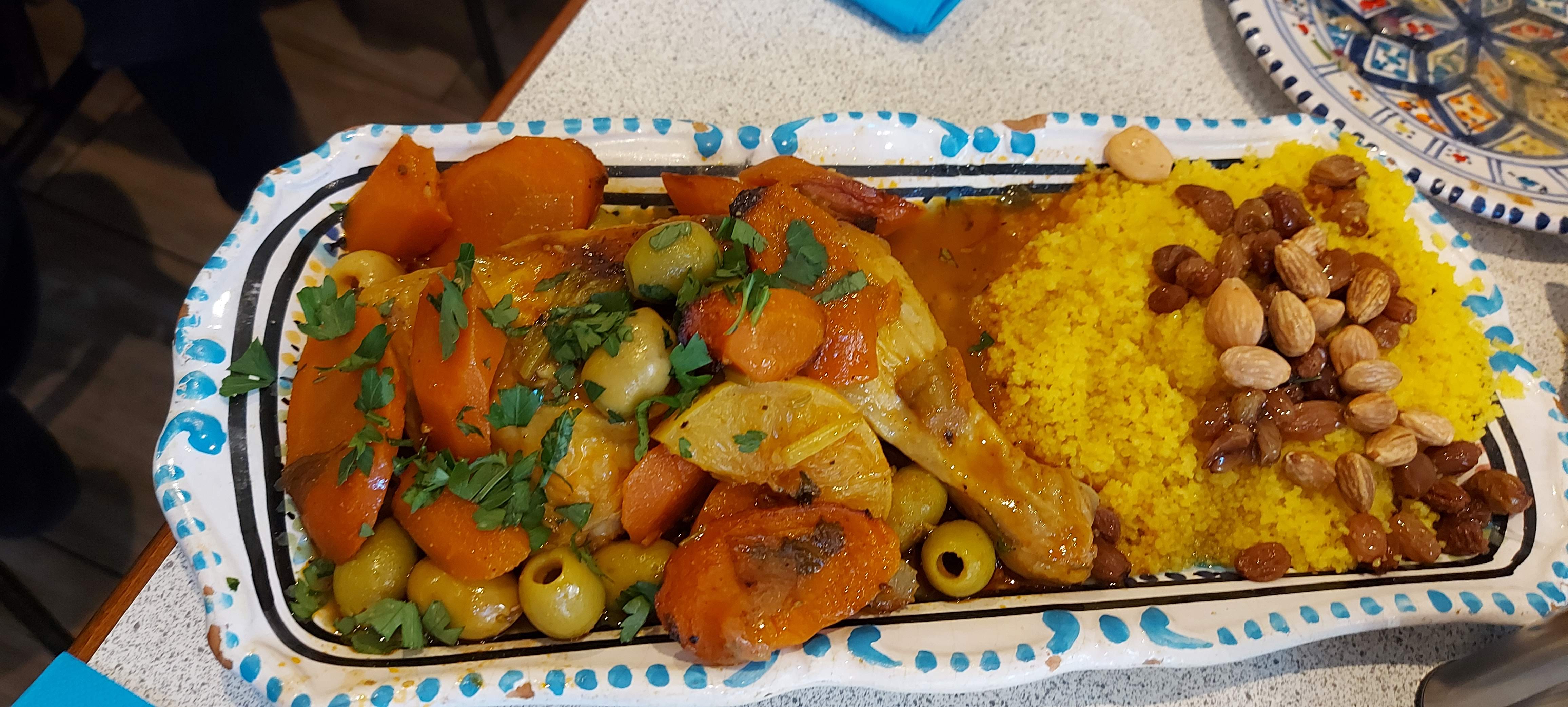 Nous avons passee un super moment serveur agreable ils nous a laisser nous assoir en attendant le debut du service car nous etions un peu en avance nous avons pris1 coucous royal et 1 coucous mix ☺nous avions aumoins a manger pour 3 a un prix resonnable la semoule etait bonne tres coloré et parfumé une semoule comme sa tu peut la manger sans rien...les legumes aussi etait bon beaucoup de gout ont sent les legumes ont sent les parfuns d orient aussi le thé a la menthe et les petits gateaux en dessert c etait juste ce qui me fallais poir achevé ce super moment (et en plus tu peut meme prendre des petits gateaux a emporté😊😊😊😊😊 alors la trop contente ) delicieux ...je vous le recommande 😊😊😊