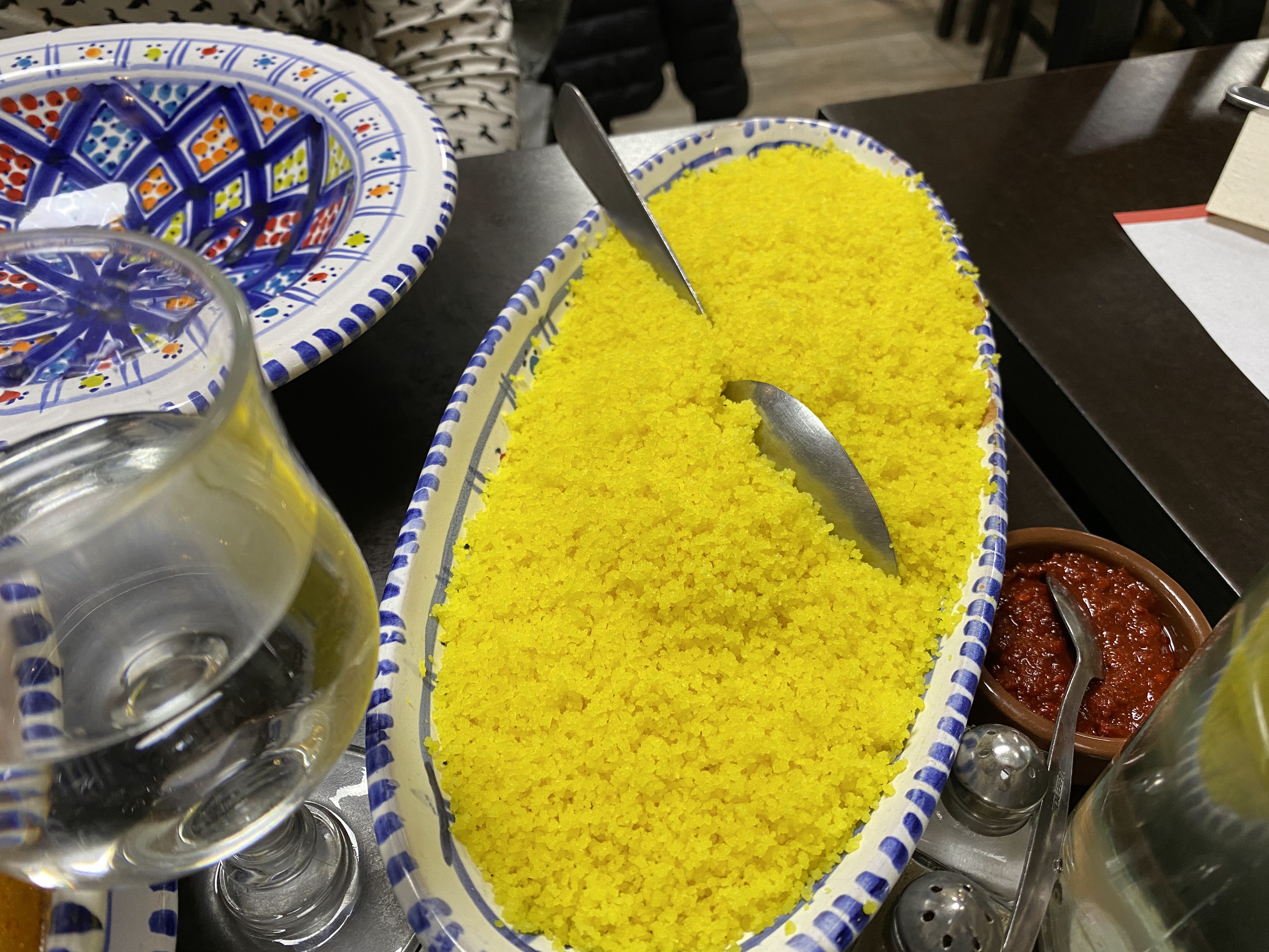 Nous y avons mangé un délicieux couscous. Le thé à la menthe était fidèle à la tradition. Je me suis retenue de manger les pâtisseries qui avaient l'air très bonnes.