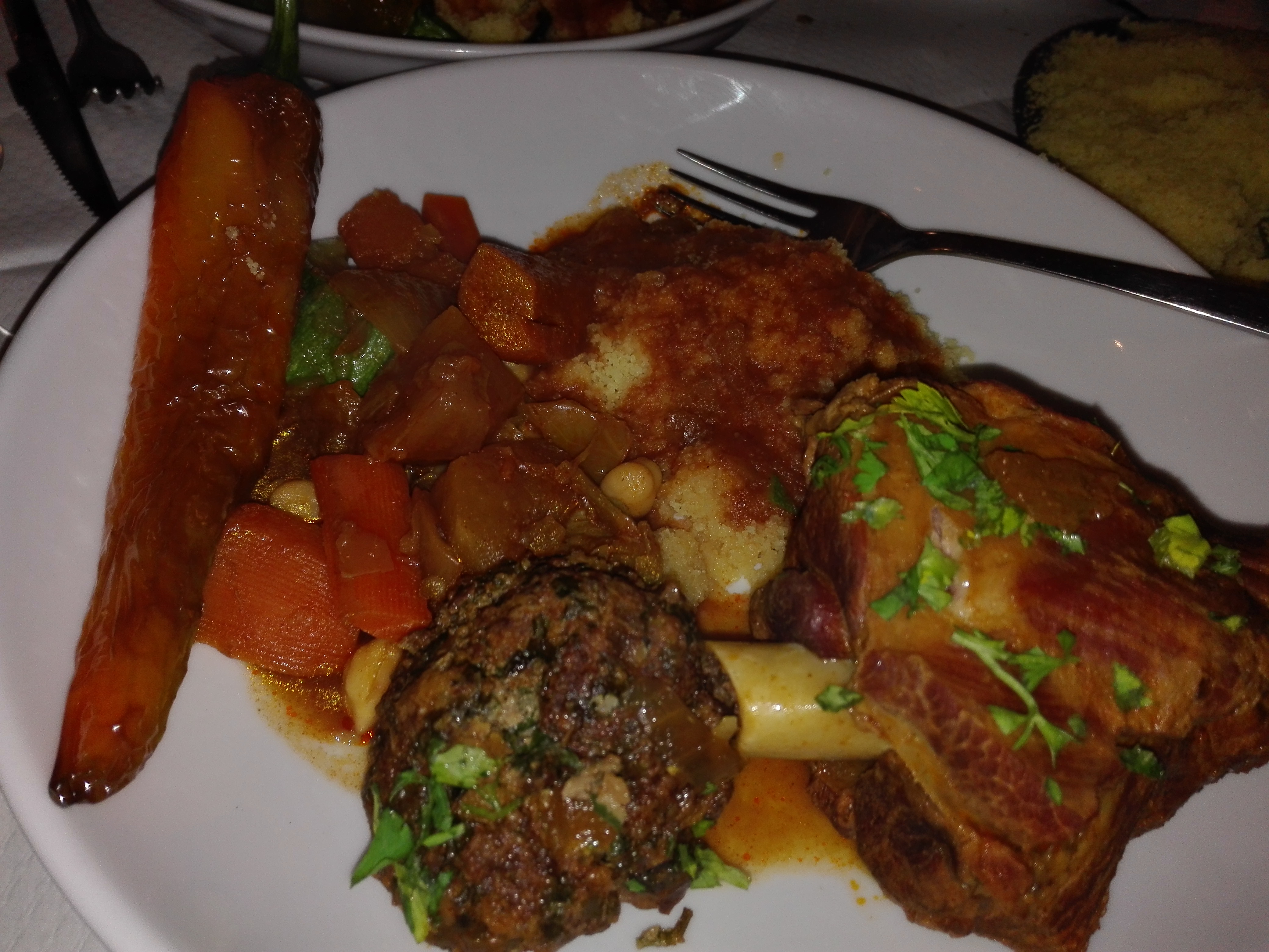 Plutot moyen... A notre arrivee, meme pas un regard de la serveuse. Bon elle nous a ensuite installes, et j'ai ete deçue. La semoule est parfumee au safran ce qui lui donne une couleur jaune carotte et un gout deja prononcé. Ensuite mes boulettes etaient tres cuite et assez epicees egalement, de meme sue le bouillon. Je pense que tout le monde n'aime pas forcemenr le cote trop releve et il serait judicieux que les clients puissent pimente si ils en ont envie... Seul point positif : le the a la menthe qui est lui delicieux et pas trop sucre. Je ne retournerais pas dans ce restaurant.