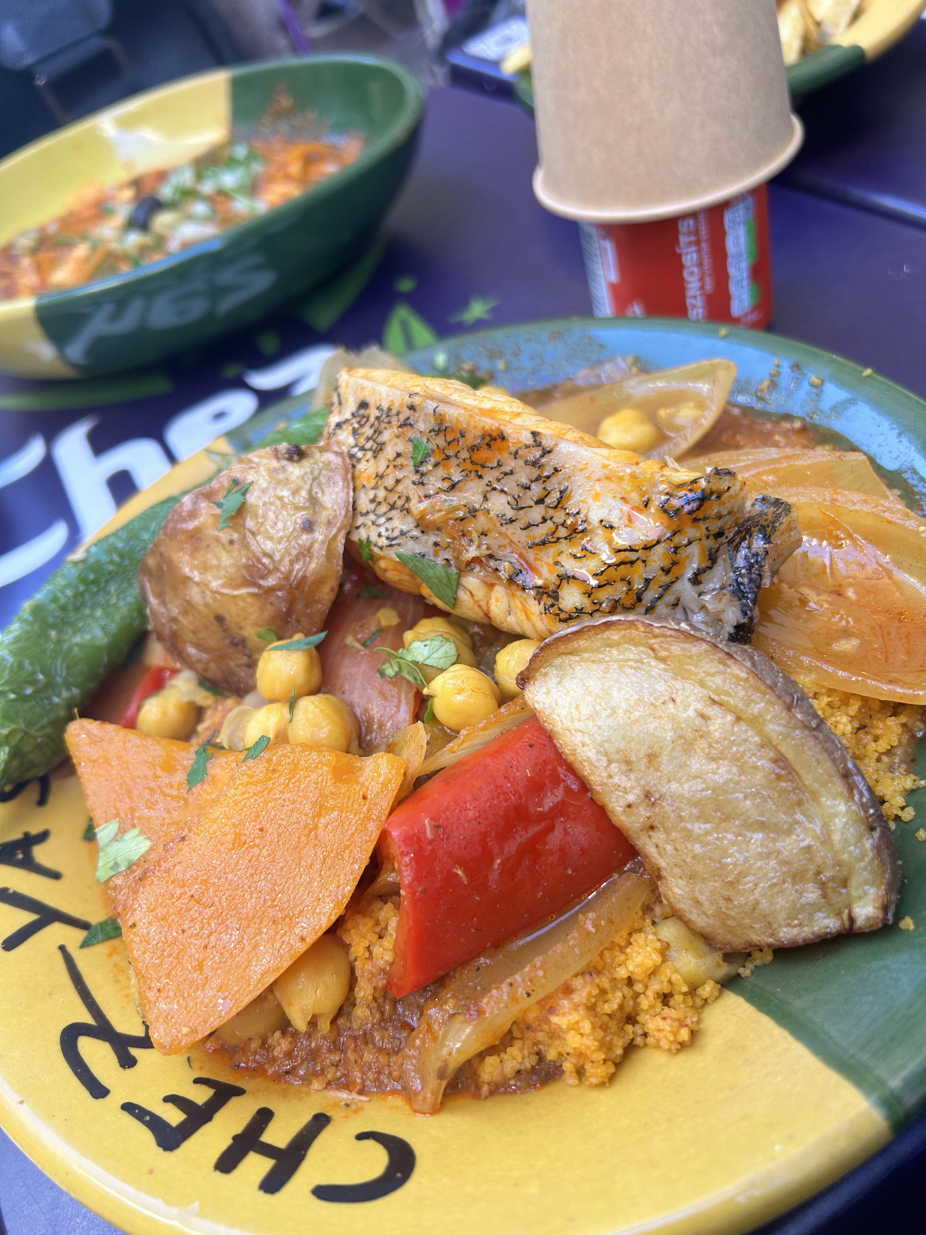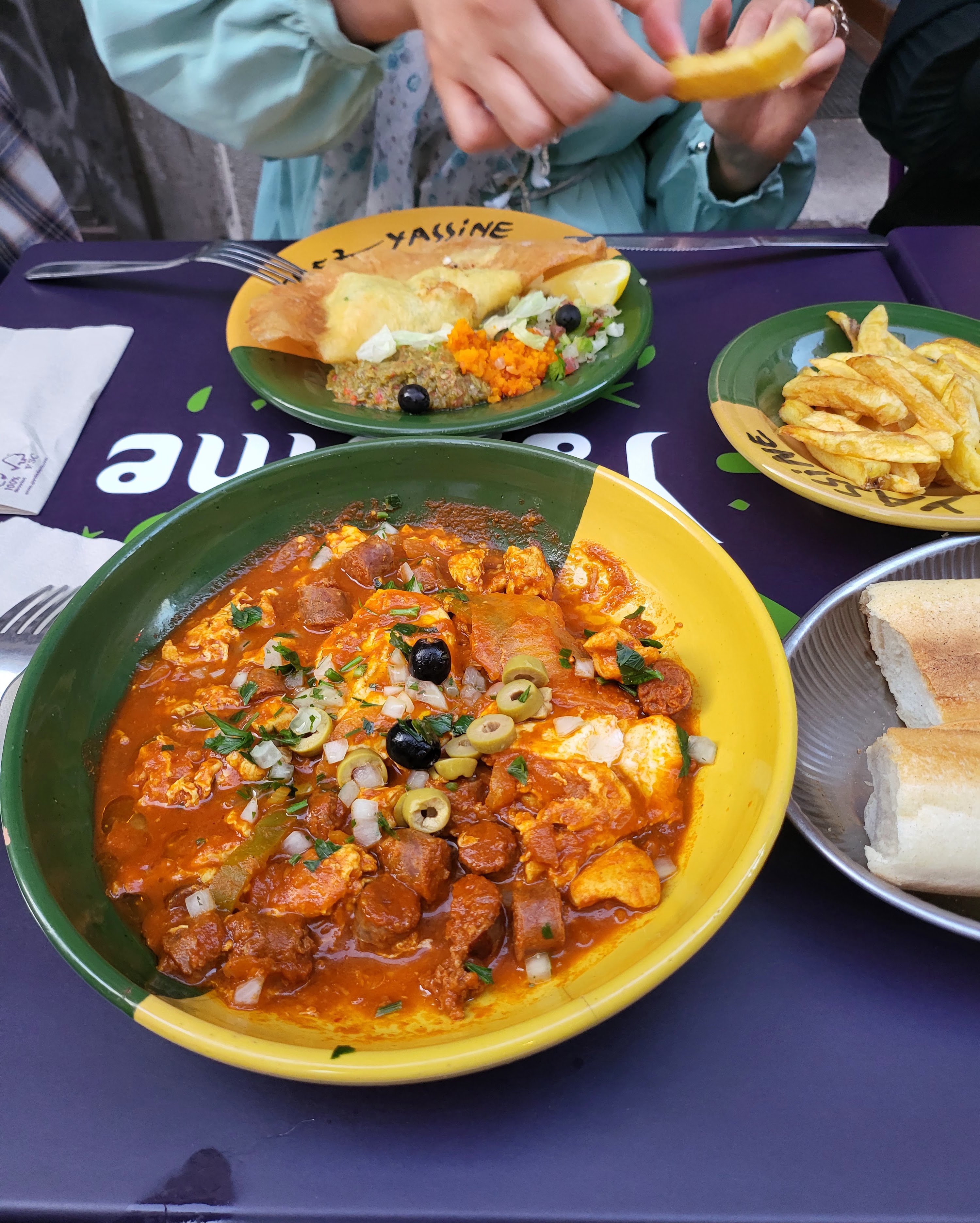 Essayé par hasard quand on a vu les assiettes en terrasse, on n'a pas été déçu: cuisine Tunisienne très copieuse, colorée et savoureuse. Attention aux épices, ça pique ! Petit bémol, beaucoup de monde il vaut mieux y aller dans l'après-midi je pense, car le soir c'était pas facile d'avoir 1 place et certains plats n'étaient plus disponibles..