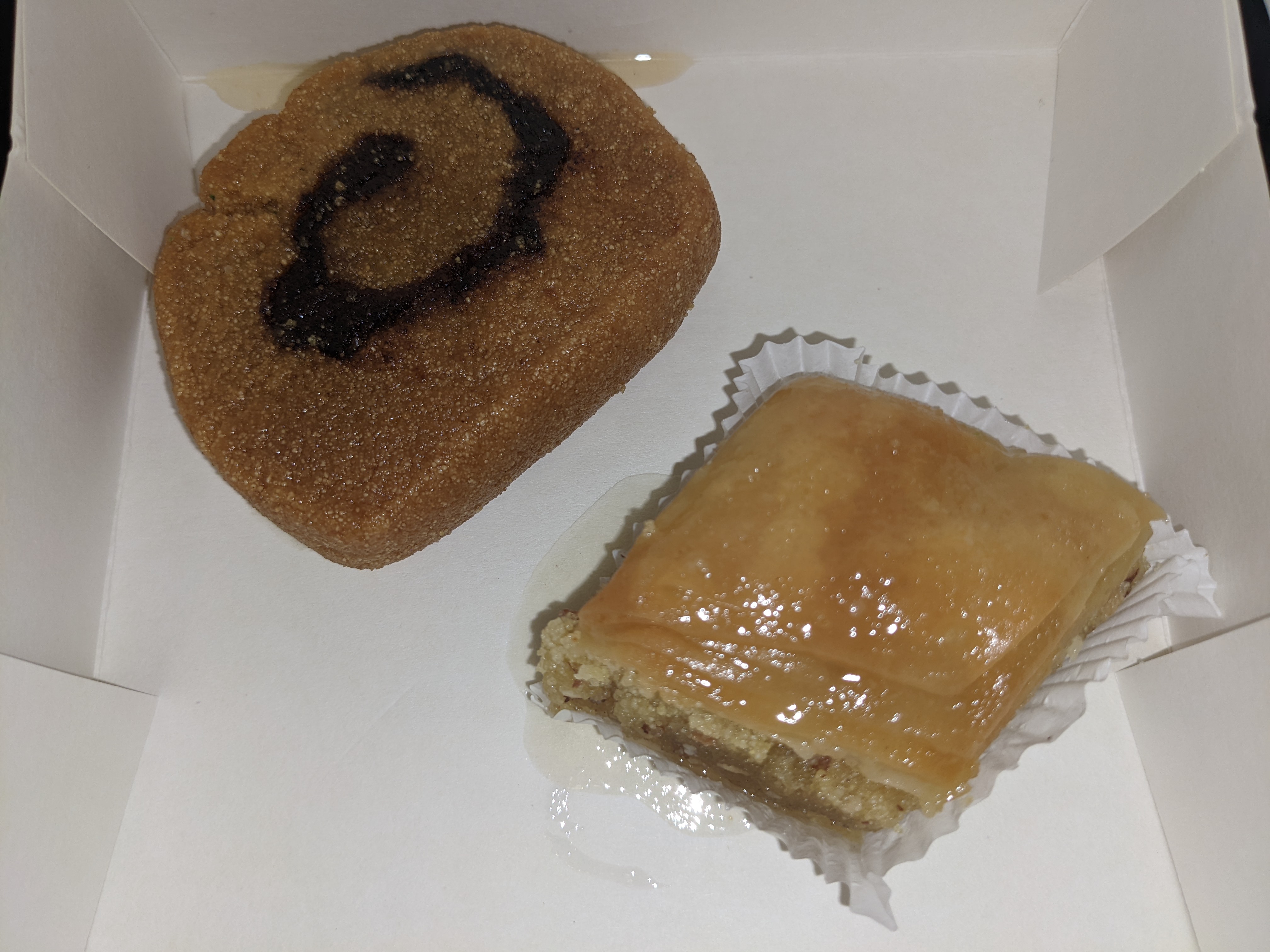L'ambiance est moyenne, mais le service est bon. Reste à essayer le menu principal. Les bonbons étaient vraiment bons. Heureux de trouver un endroit qui sert du thé. J'aurais aimé qu'ils servent également du chai Kawa du Cachemire. Les Baklawa coûtent 2,50.