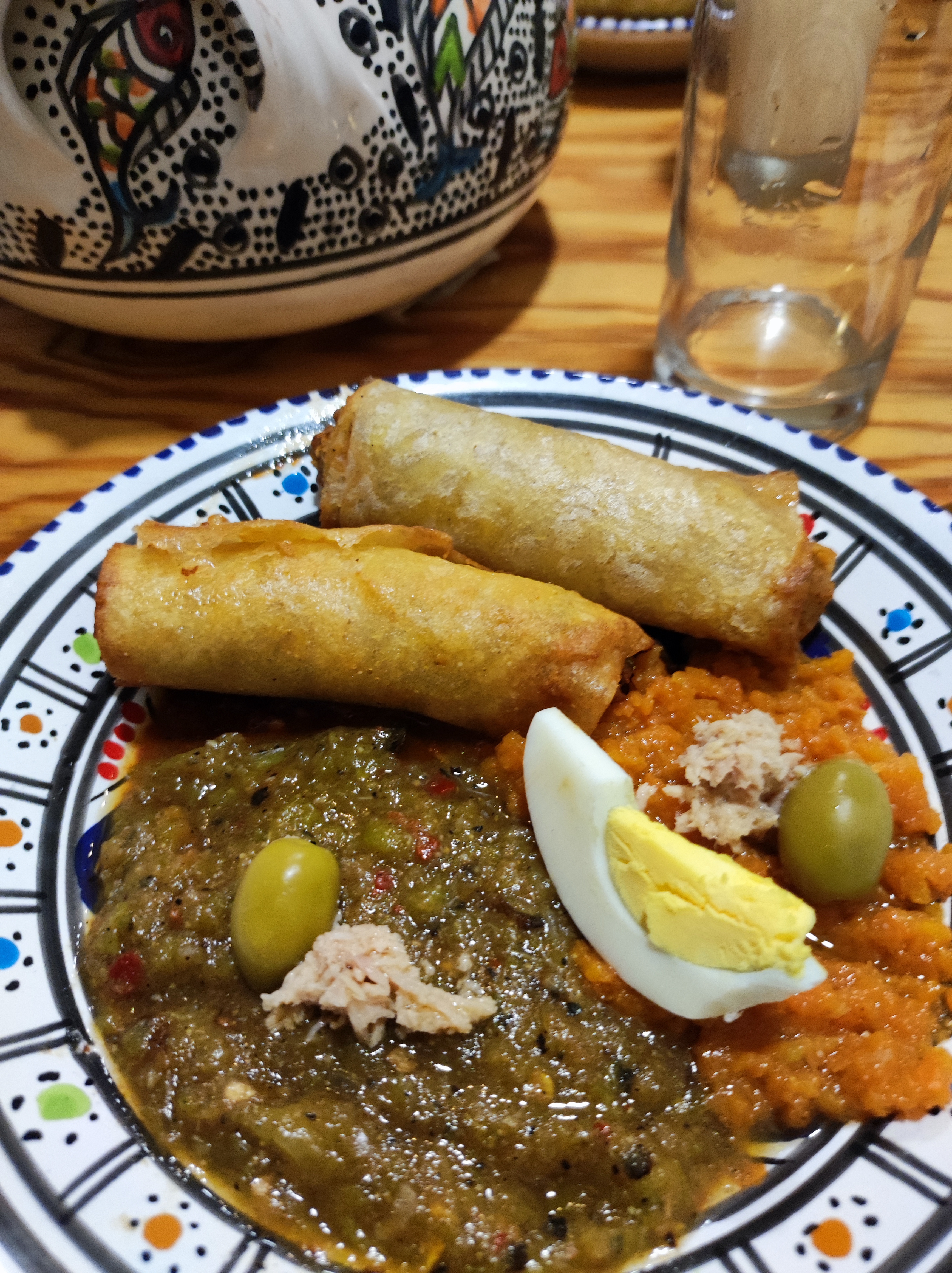 On pensais manger un plat Tunisien, On a carrément fais un voyage des saveurs tunisienne, kaftegi, slata machouilla, couscous daurade et une citronnade faite maison ! Merveilleusement délicieux 😋 ! Allez-y les yeux fermés, une adresse à conserver ! Je vous recommande vivement ! Dommage, on peut pas mettre 6⭐️
