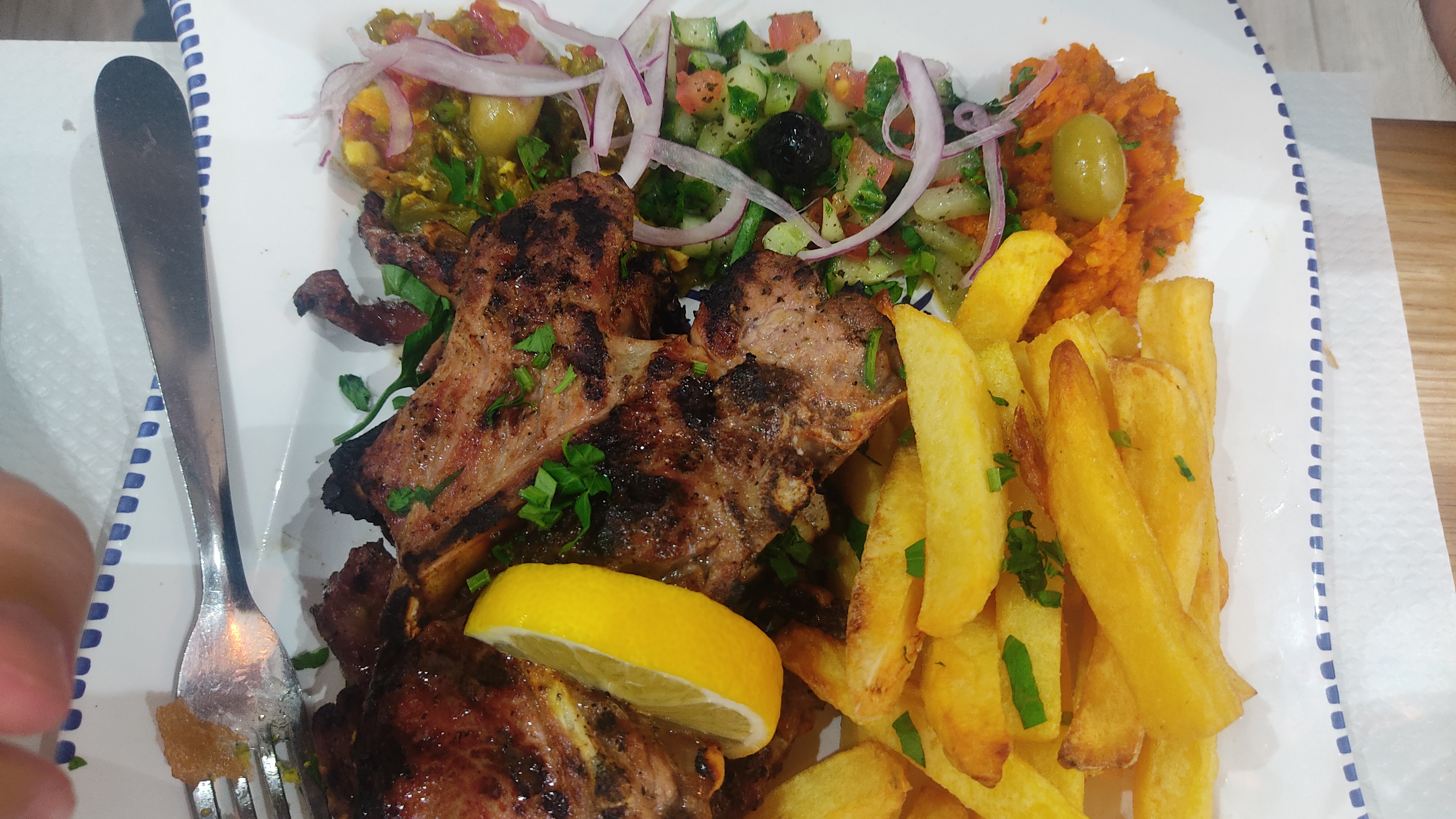 Très joli restaurant ,neuf ,propre,service rapide et en plus on vous offre le thé à la menthe !petit bémol pour moi:j'avais demandé une entrecôte et le serveur a dû entendre escalope donc j'ai dû manger cette dernière car je n'ai pas voulu souligner cette erreur.Je recommande quand même ce restaurant aux saveurs tunisiennes !!