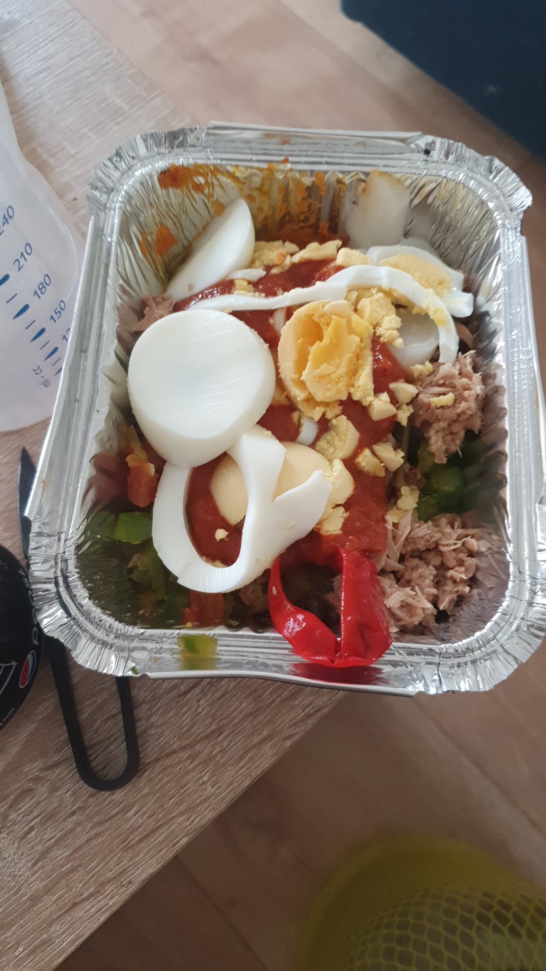 Commande sur deliveroo, Plat reçu dans de l'aluminium, Tout est renversé, Pour 18 euros le plat vous pourriez le mettre dans une boîte.