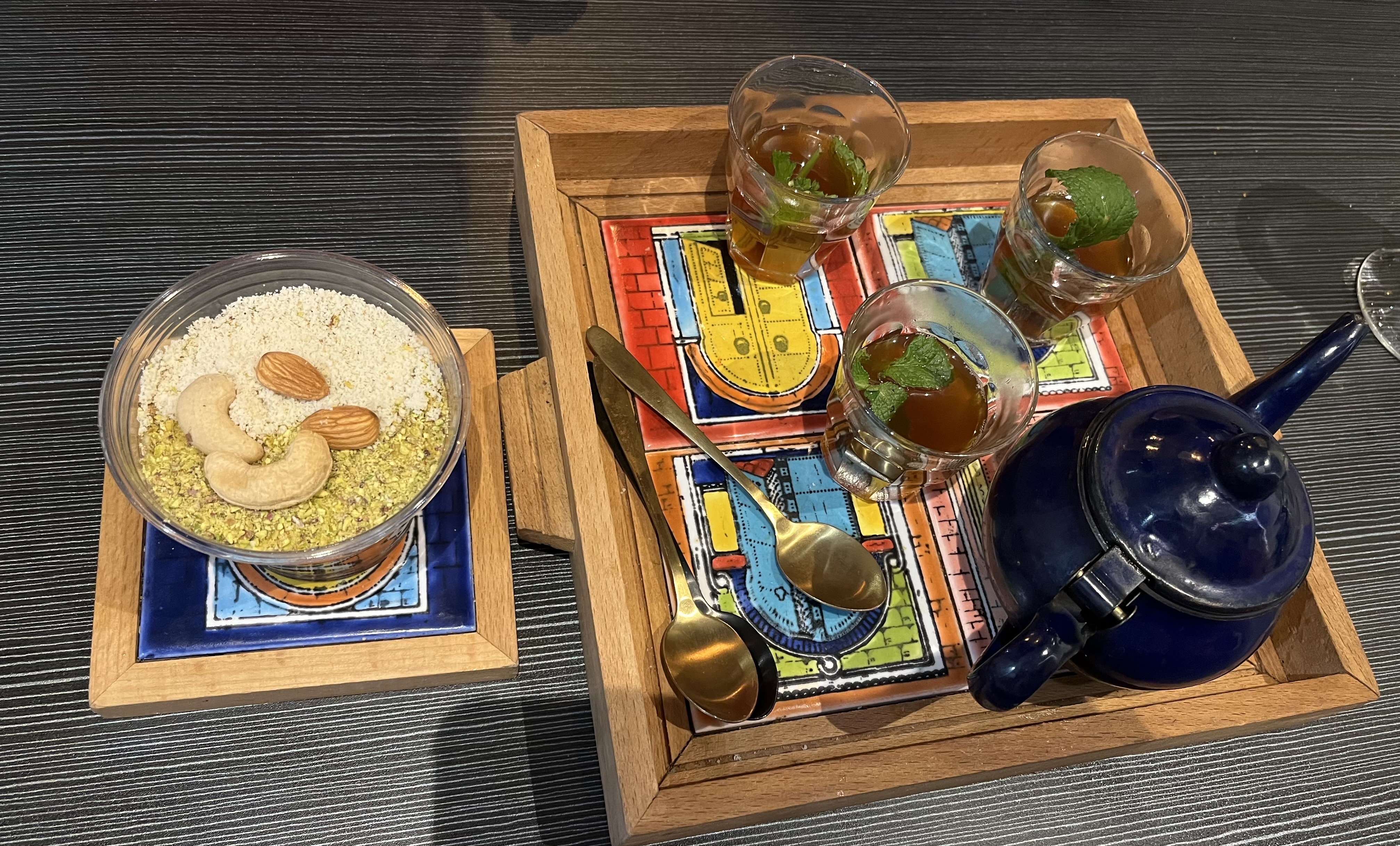 Parfait de A à Z , une superbe découverte !!! Les plats étaient aussi beaux que bon, le service parfait !! Et que dire du lieux magnifique qui donne l impression de se trouver en Tunisie !!! Merci à mes 5uya pour m avoir permis de découvrir ce quo a été notre meilleur restaurant de paris et même depuis longtemps !!! Un régale !