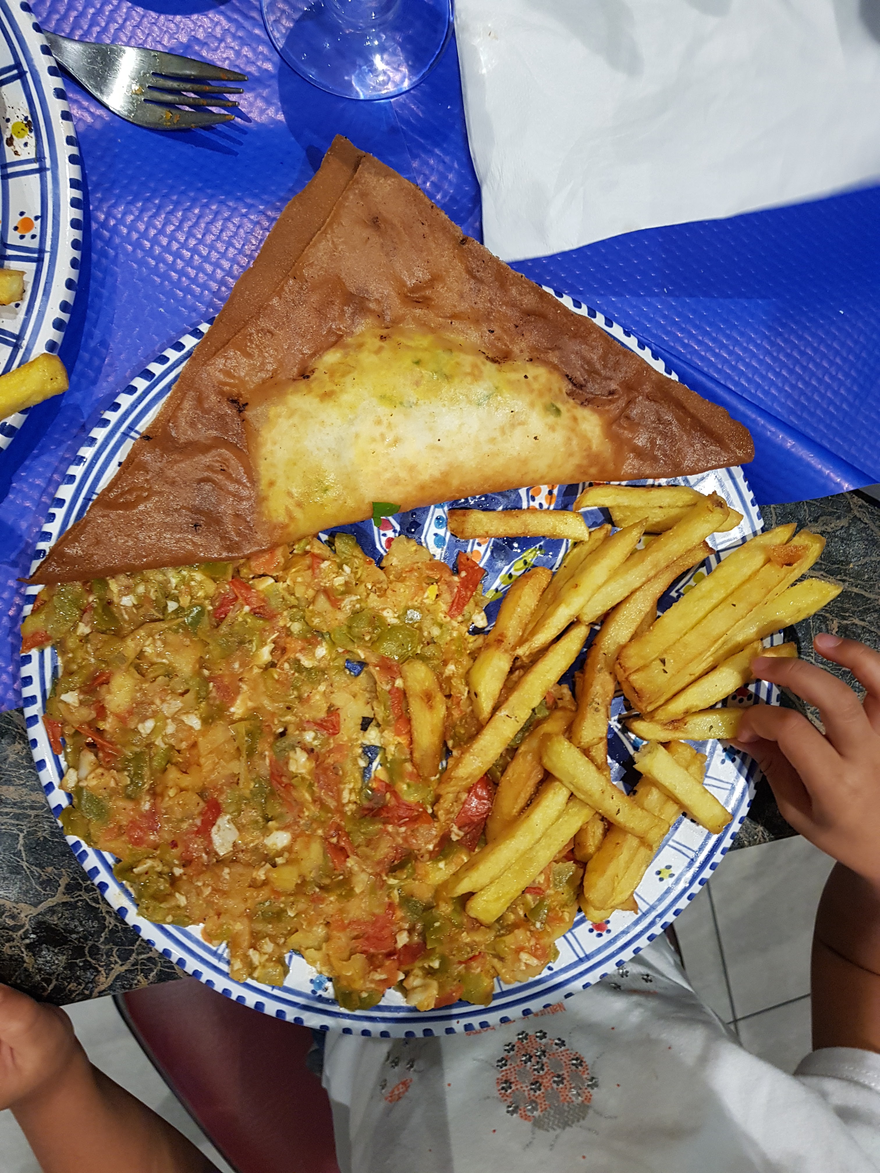 Déjeuner très agréable, nous avons été servis avec le sourire et de façon très gentille on nous a fait goûter un plat typique que nous ne connaissions pas (mloukhia) Attention aux piments 😜.
