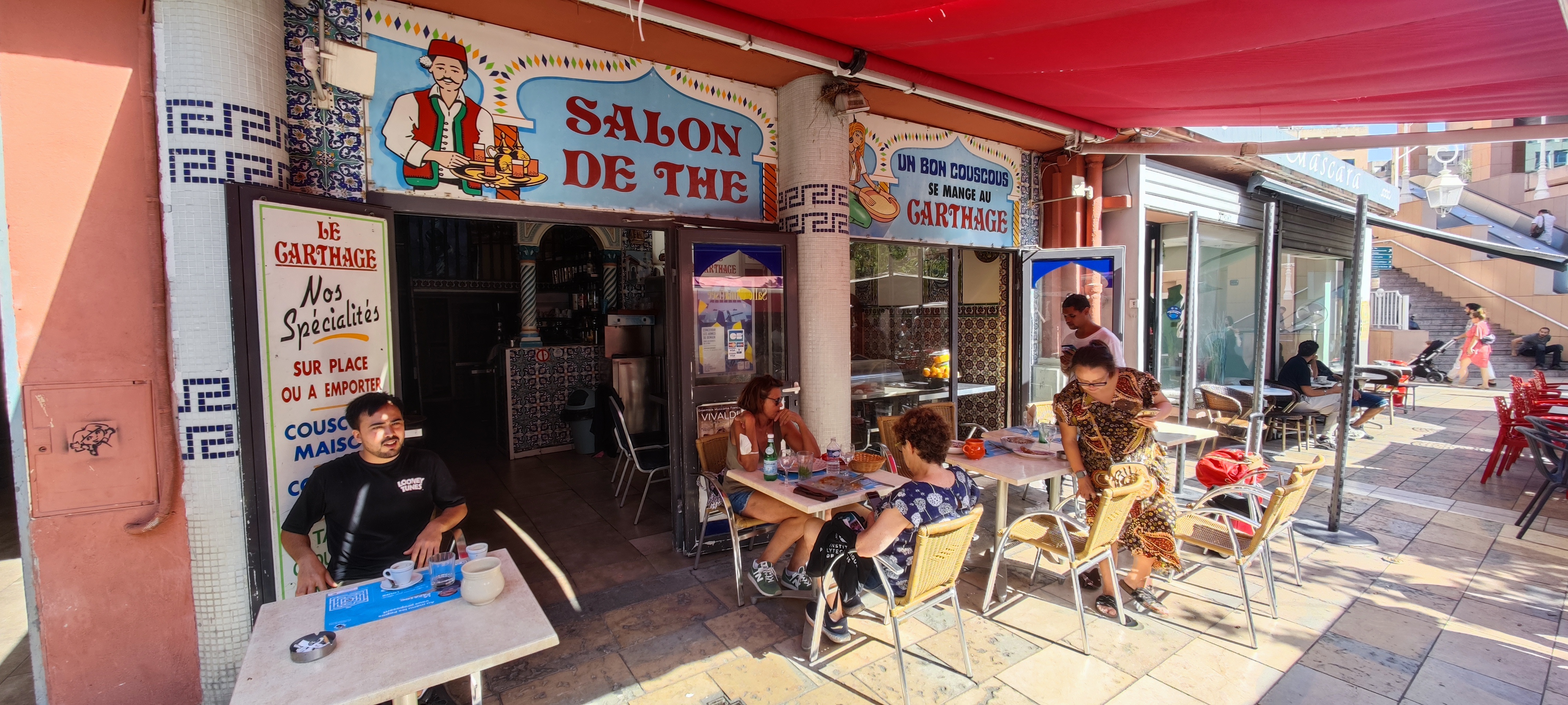 2 Étoiles pour la serveuse qui également la propriétaire qui est sympathique. Mais déborder et sert les plat au compte goute vous ne mangererez pas en même temps! Pour le reste passez votre chemin! Vous n êtes pas à Carthage !! Nous en sommes même très loin! Couscous zéro aucun goût. Salade mechouiya. Poivrons recouvert d harissa. Sandwinch tunisien zéro pain dure comme pas possible et garni d'un peu de poivrons et de thon! Très cher pour ce qu'on a mangé au final. Je ne recommande pas du tout