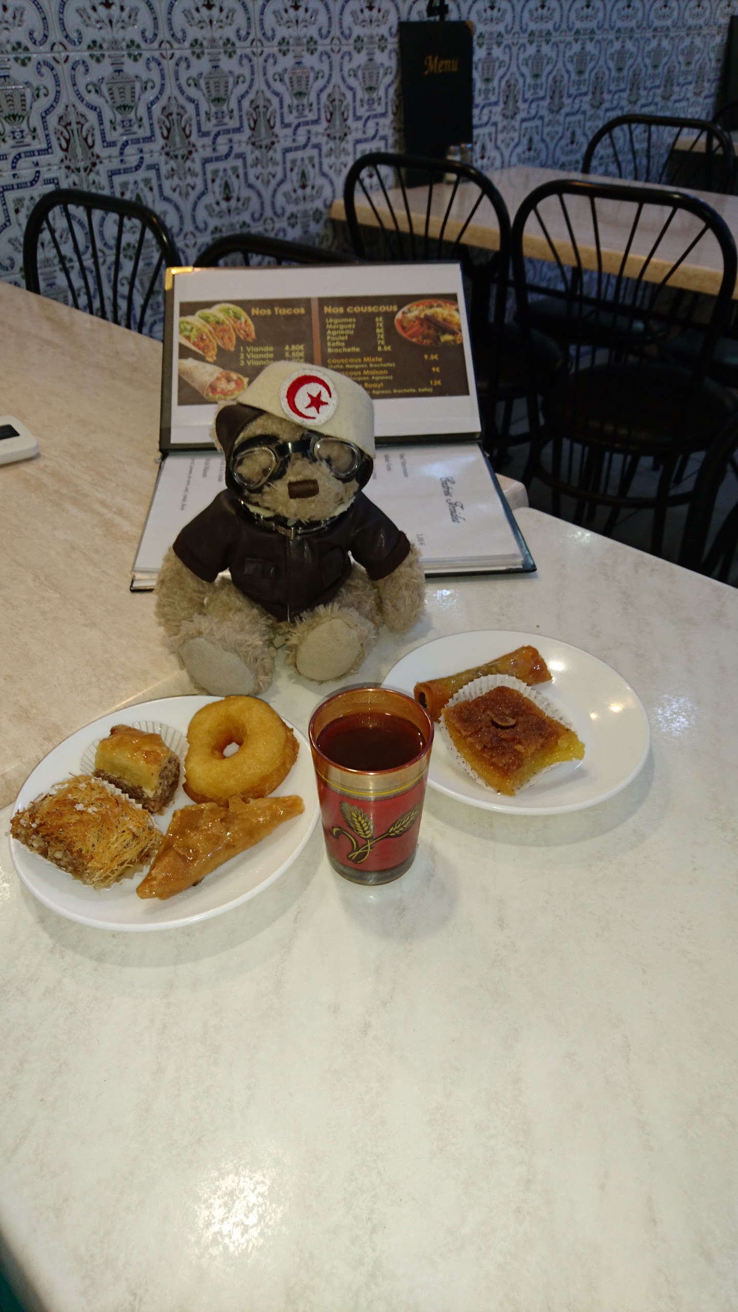Je suis franco tunisien J'ai été manger la bas, j'ai commencé par commander: -Un couscous royal, (poulet,agneau, brochette,boulette et merguez). -une salade mechwouia Des briks -Un thé et des pâtisserie tunisiennes. En premier, j'ai eu la salade mechwouia j'ai pas aimer qu'elle ne soit pas piquante comme elle devrait l'être, je l'en aurait fait part, ont ma ramener une harissa 🌶 qui n'était pas artisanale, j'avais pas fini que l'ont me ramène les briks,délicieuse les oeufs était coulant, les tranches de citron étais trop petites malheureusement, et encore une fois j'avais déjà pas fini que l'ont ma amener le couscous, c'est dérangeant d'avoir un service comme sa, une fois fini les briks, j'ai commencé à manger le couscous, le goût était pas celui espèrer la sauce ont aurai dit de l'eau, les légumes n'avais pas de goût, la viande de poulet étai bien,le veau était bien cuit, la merguez étais pas cuite et pas top comme goût comme du caoutchouc, la brochette étais pas cuite non plus, sa manquer de sel. J'ai demandé un thé et des pâtisseries, j'ai eu un verre de thé, goût eau pas top malheureusement les pâtisserie étais trop mielleuse trop lourd,j'avais pas encore fini que l'ont viens me dire que si je doit payer par carte bancaire je devais le faire maintenant car le patron s'en va et l'appareil est avec le patron malheureusement décevant comme établissement, j'ai eu mieux malheureusement. Le service est peut recommandé car trop rapide j'ai pas compris pourquoi manger aussi vite. Service déplorable ont se croie à la chaîne