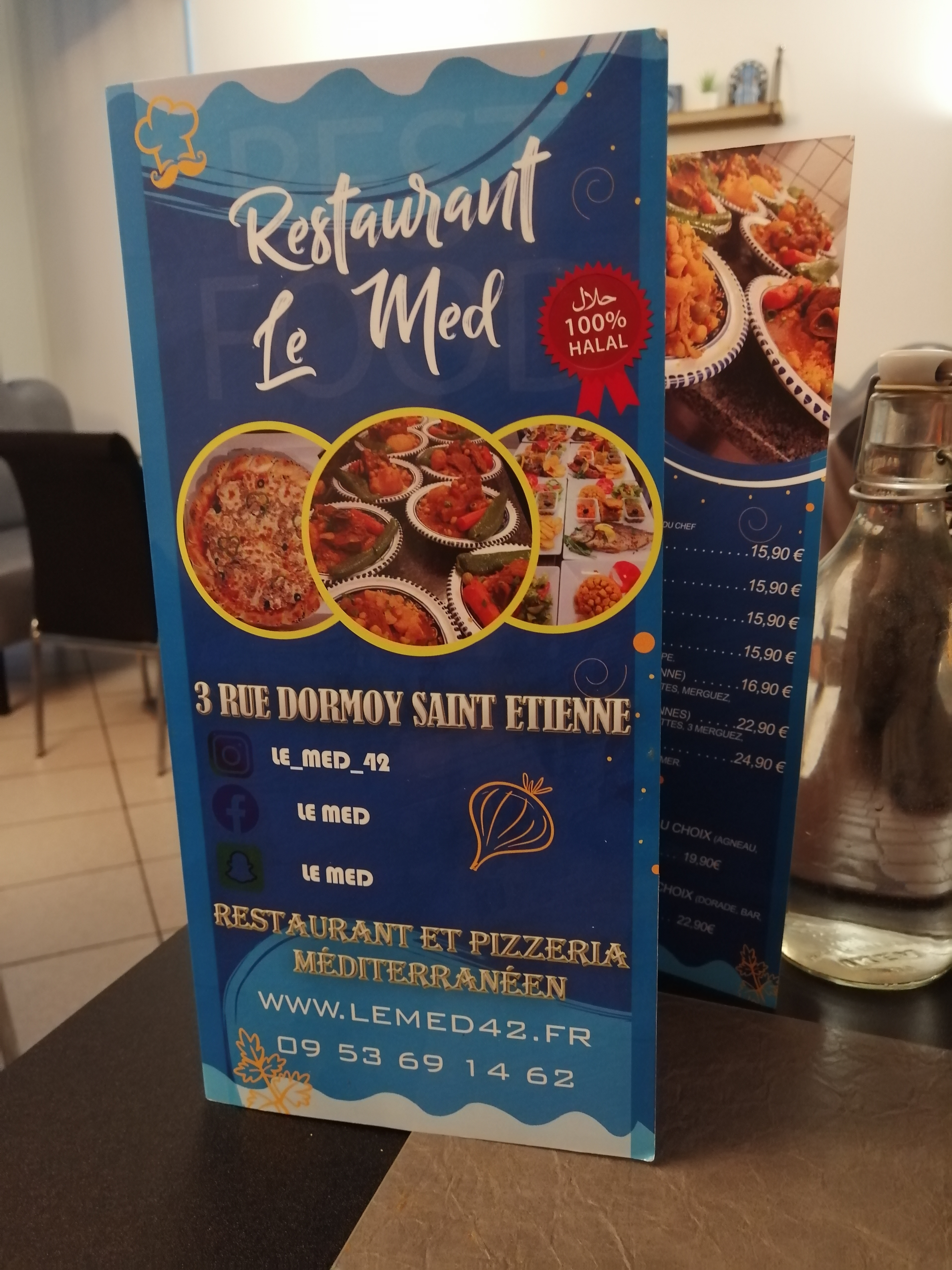 J’ai appelez « Le Med » pour réserver une table de 2 personnes ce samedi soir. Une femme très agréable ma répondu rapidement par téléphone. Une fois sur place un accueil chaleureux nous attendaient . Nous avons pris une entrée chacun et 2 couscous d’agneau. C’est officiellement le plus bon couscous sur Saint-Étienne. Ont a été servis rapidement et le personnel est très agréable. Le seul point négatif c’est que les toilettes ne sont pas à la hauteur de l’endroit. Nous reviendrons !! Ps: rapport qualité prix impeccable