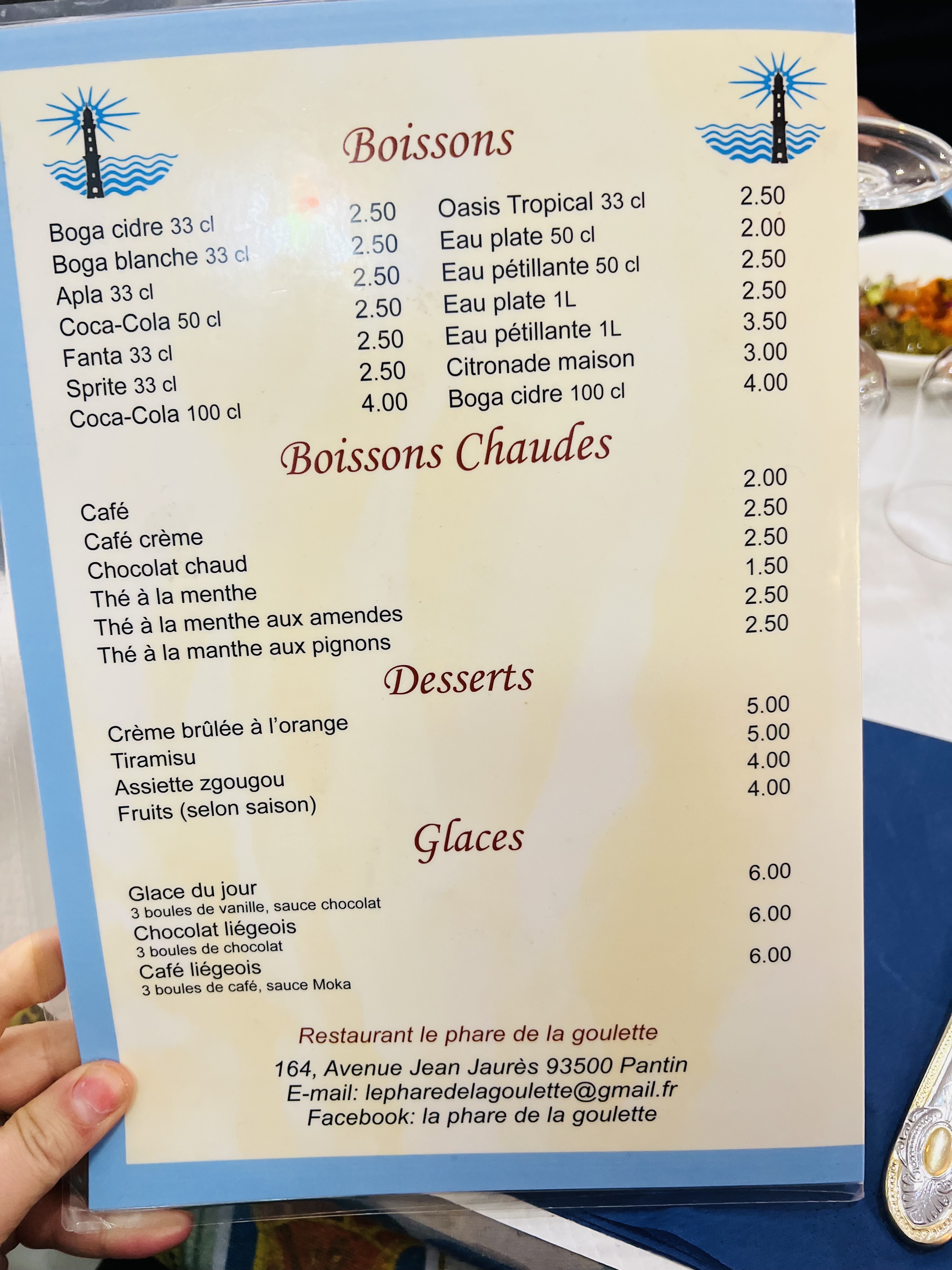 Voici toutes les informations sur le Restaurant tunisien Le Phare de la Goulette qui ce trouve au 164 Av. Jean Jaurès, 93500 Pantin (93). Sur cette fiche vous trouverez les photos, l'adresse, les horaires d'ouverture, le numero de téléphone et les avis clients.Vous pouvez églement rédiger un avis si vous le souhaitez en bas de page.