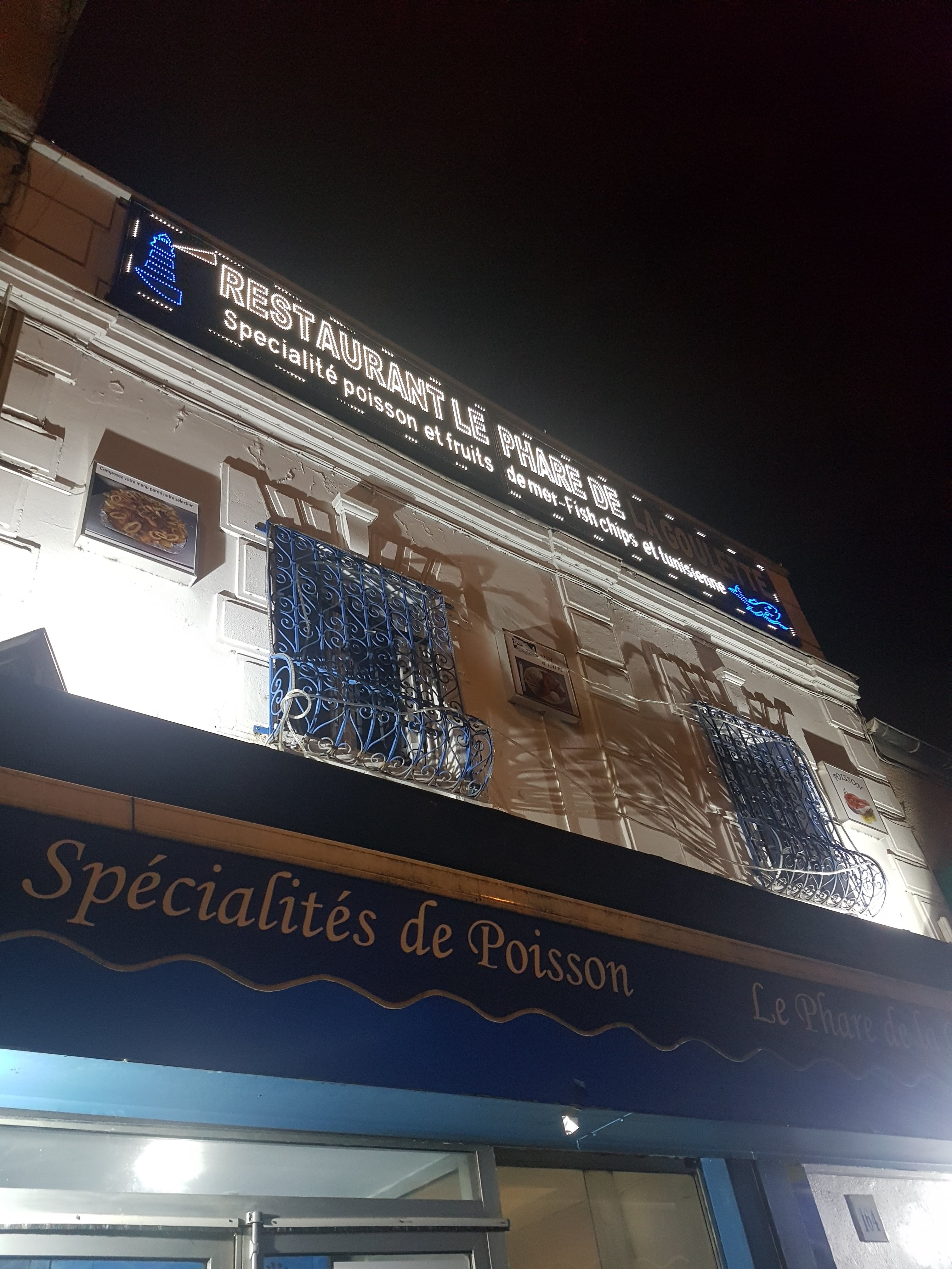 Bon restaurant tunisien. Quand on a l'habitude de manger des grillades de poissons au pays pendant les vacances , et bien on les retrouve au Phare de la Goulette. On peut choisir au poids ou à la pièce, toutes sortes selon arrivage espadon, crevettes , dorades, calamars.... la citronnade est bonne pas trop sucrée. En tous cas pour le poissons on peut y aller les yeux fermés c'est super frais.