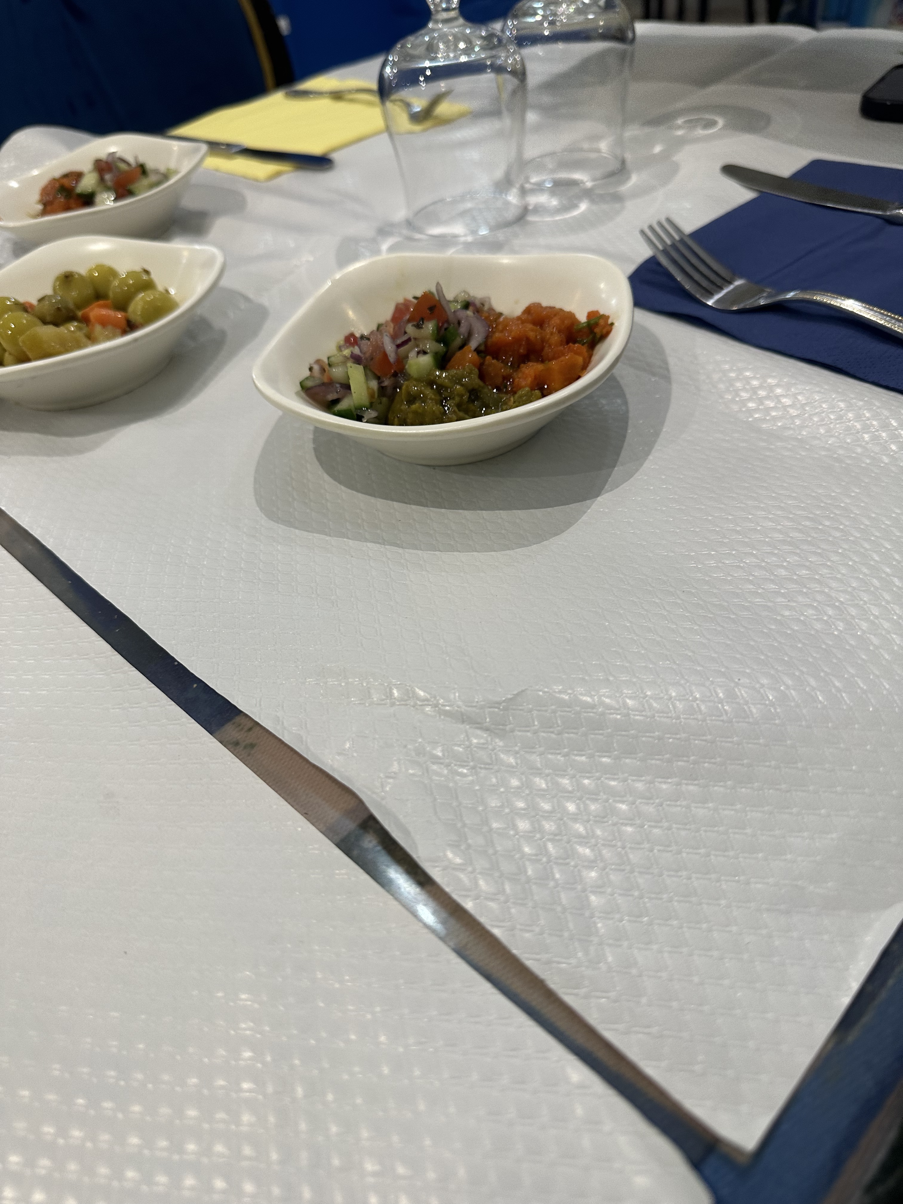 Restaurant très sale, ils nous ont servis une entrée que on a mangé a moitié, le serveur est venu récupère l'entrée moitié entamé, il a rempli la même petite assiette et il a mis au frigo pour le prochain client. a éviter absolument. je mets une étoile par ce que je ne peux pas valider sans.