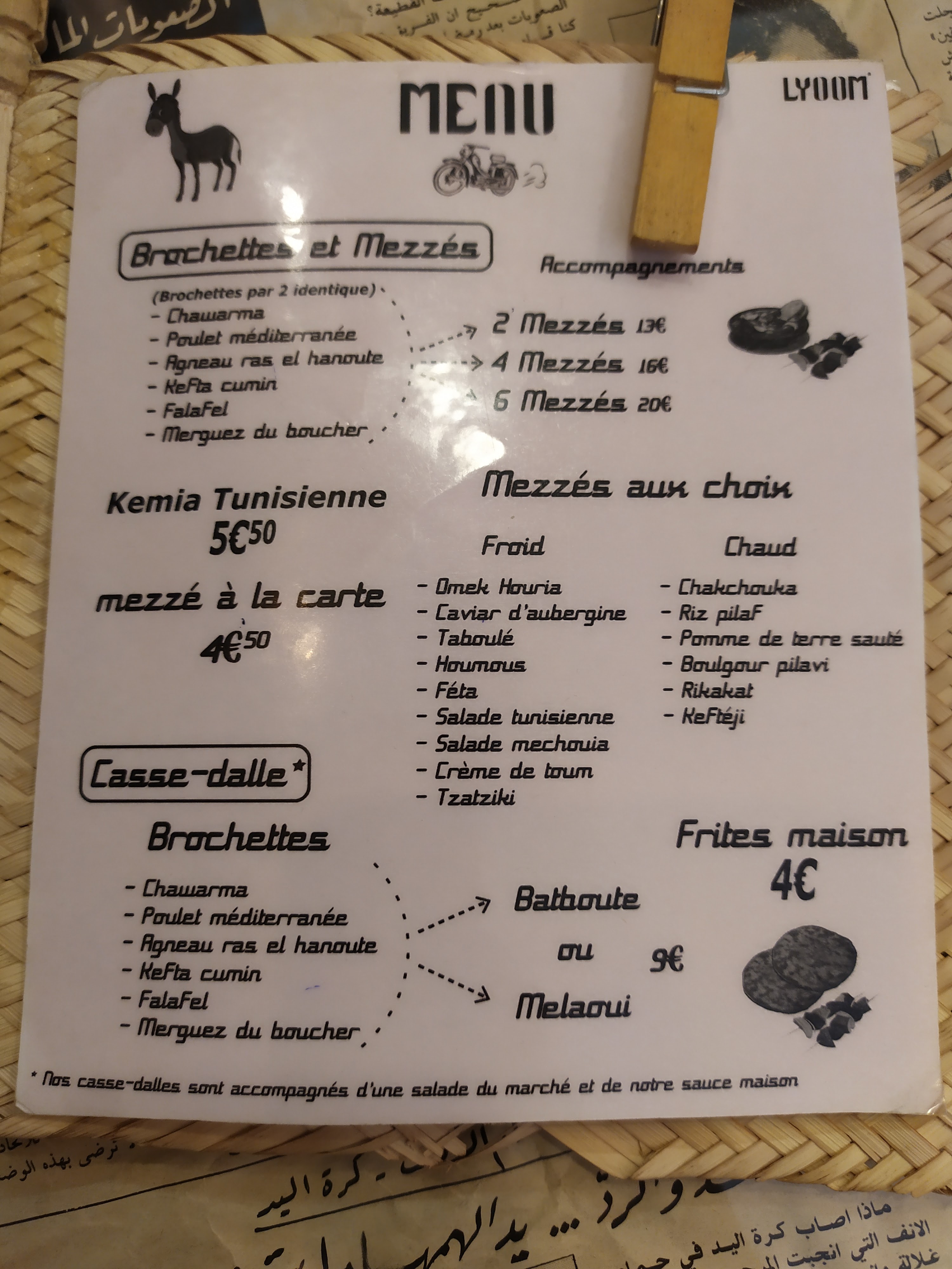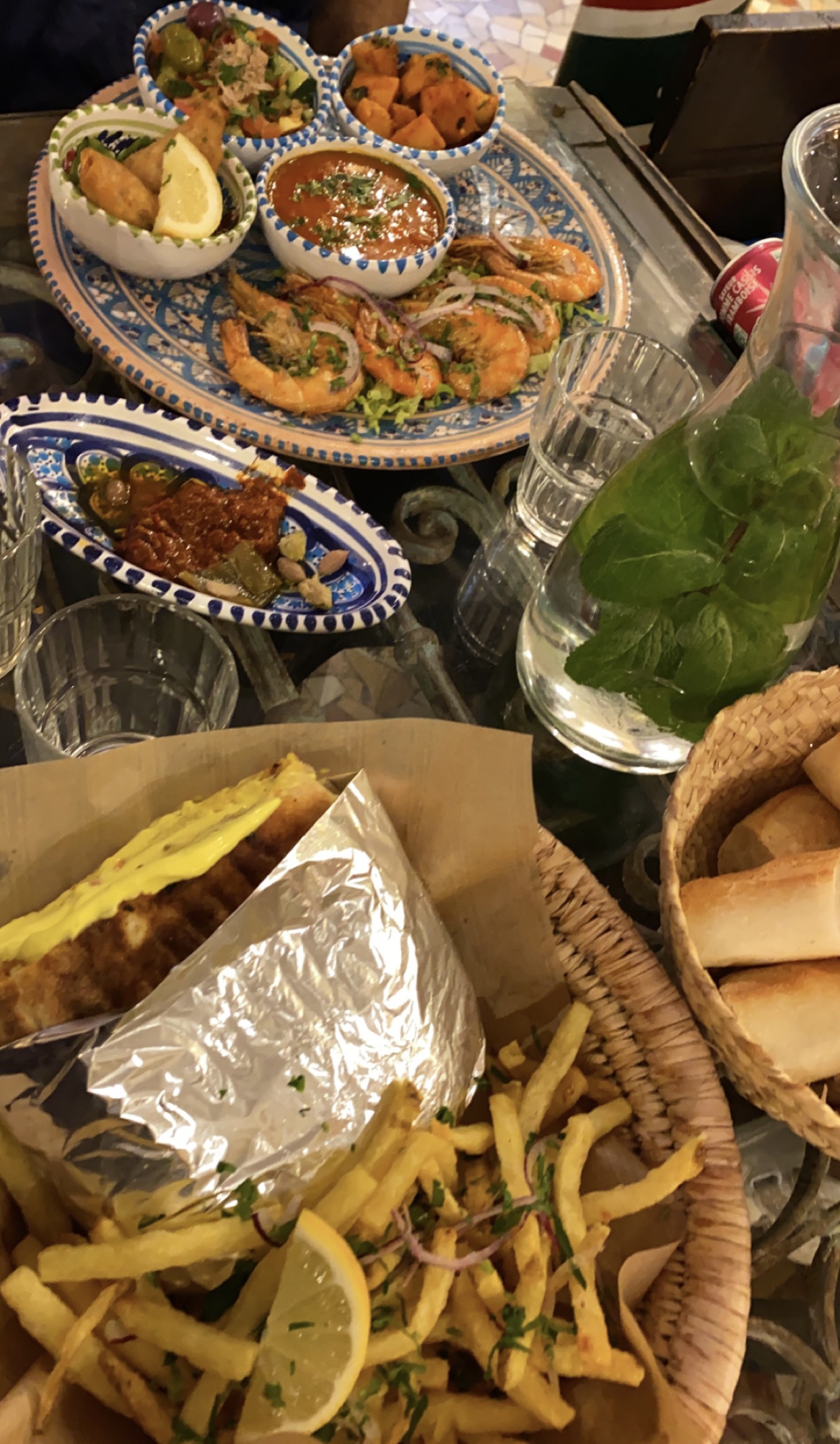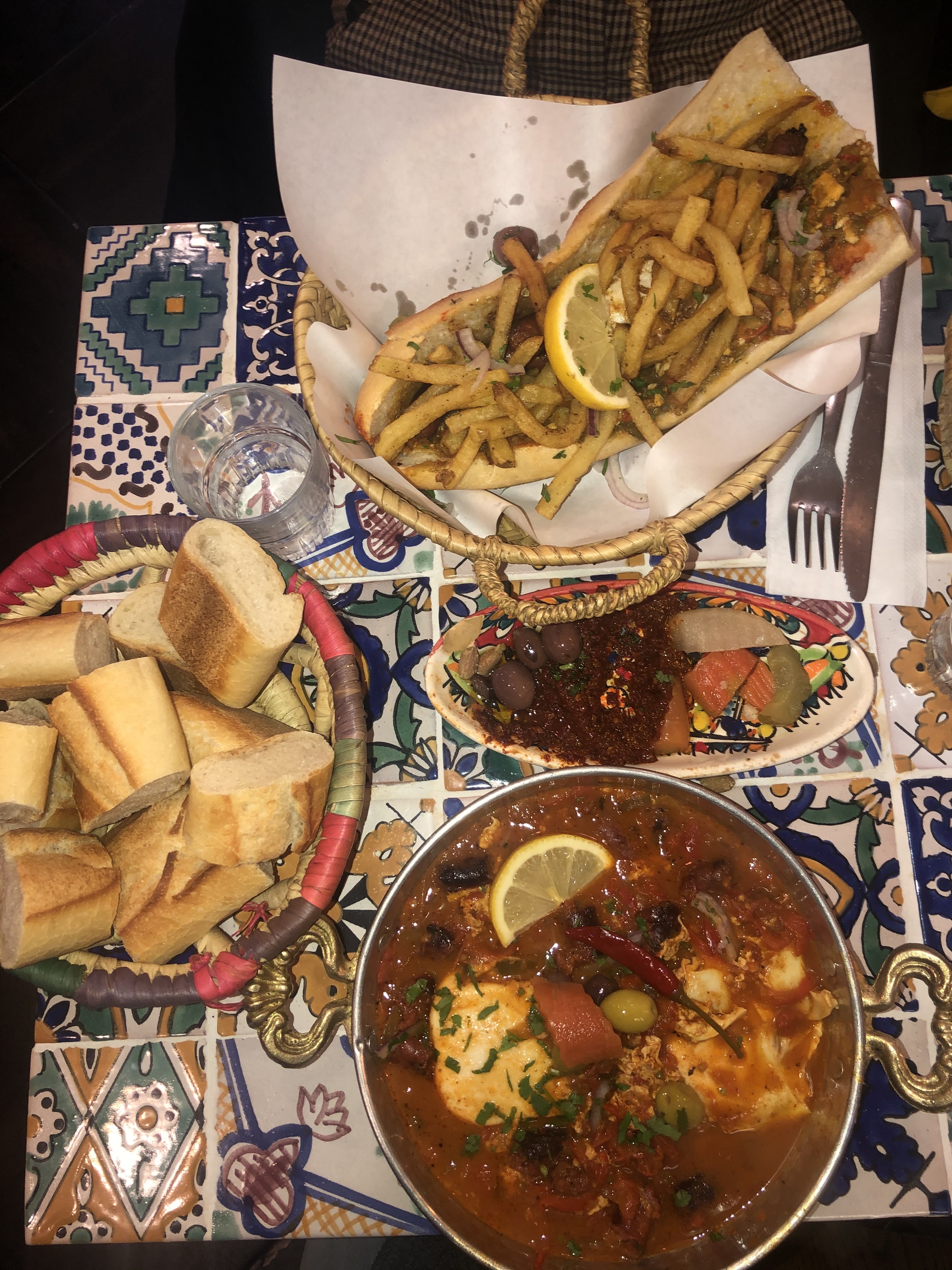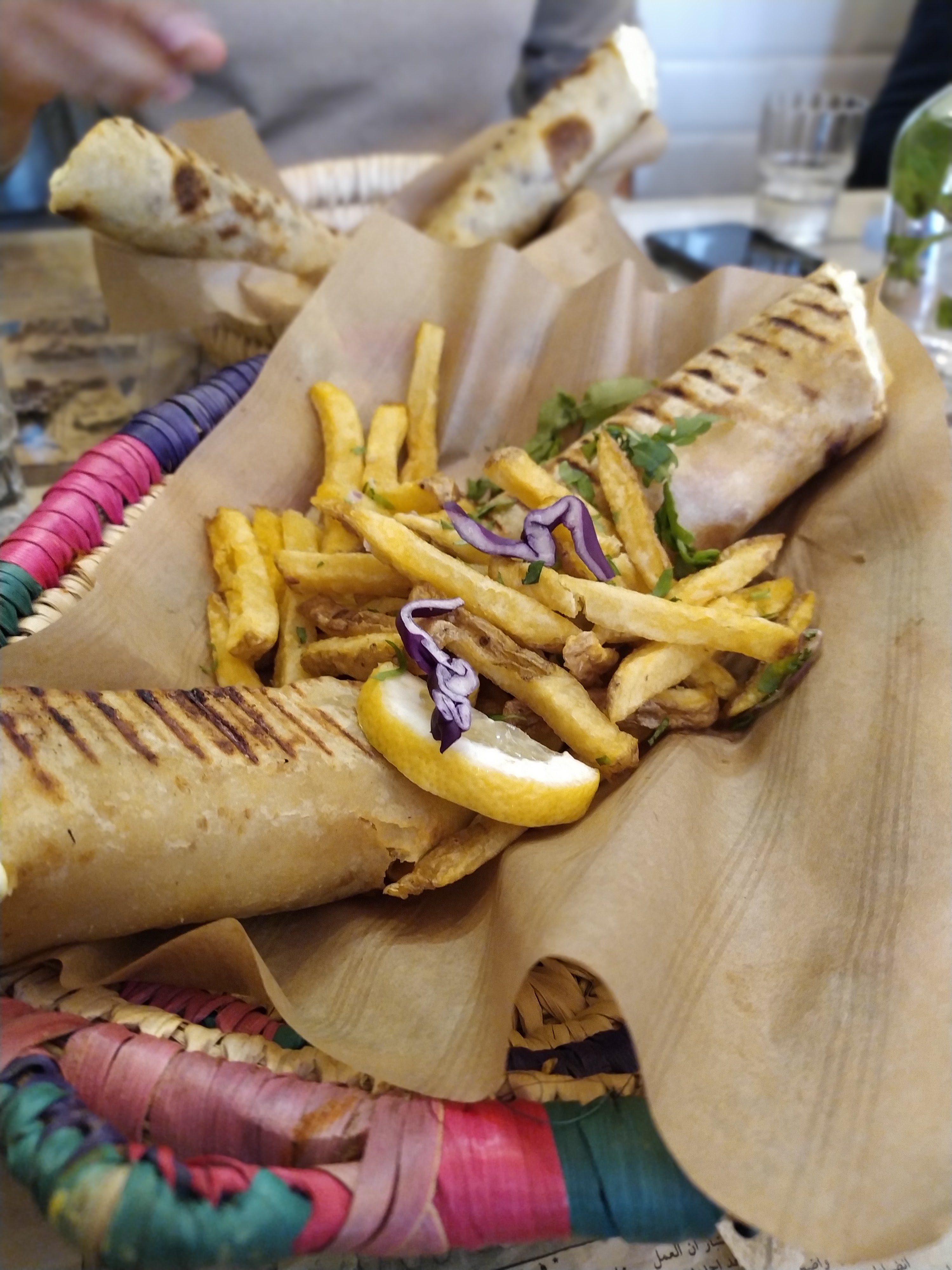 La décoration est magnifique on voyage vraiment en Tunisie. A chaque regard une nouvelle histoire ou découverte. Salade tunisienne, bricks délicieuses. Les chapatis délicieux également. Seul bémol les frites qui ne sont pas arrivées chaudes alors qu’elles étaient faites maison, on aurait adoré les manger chaudes. Portions très gourmandes.