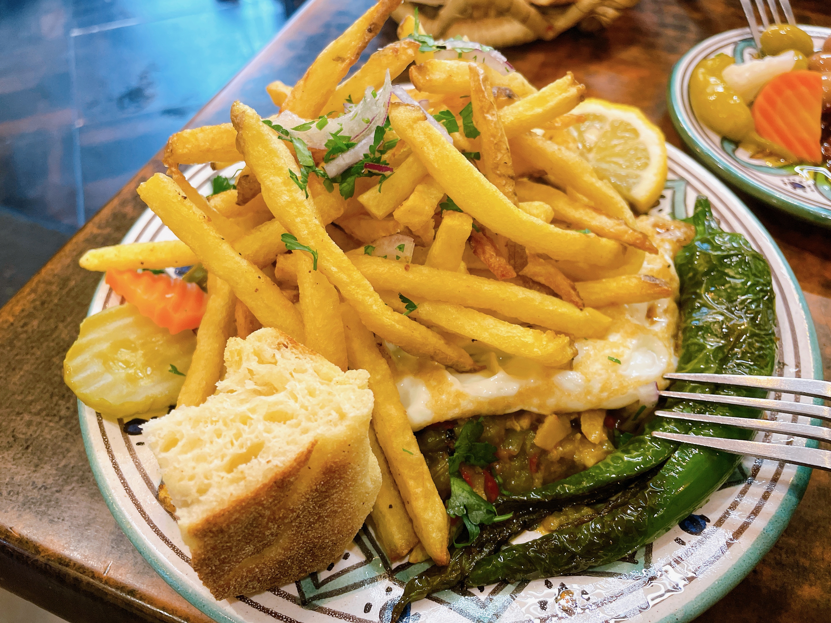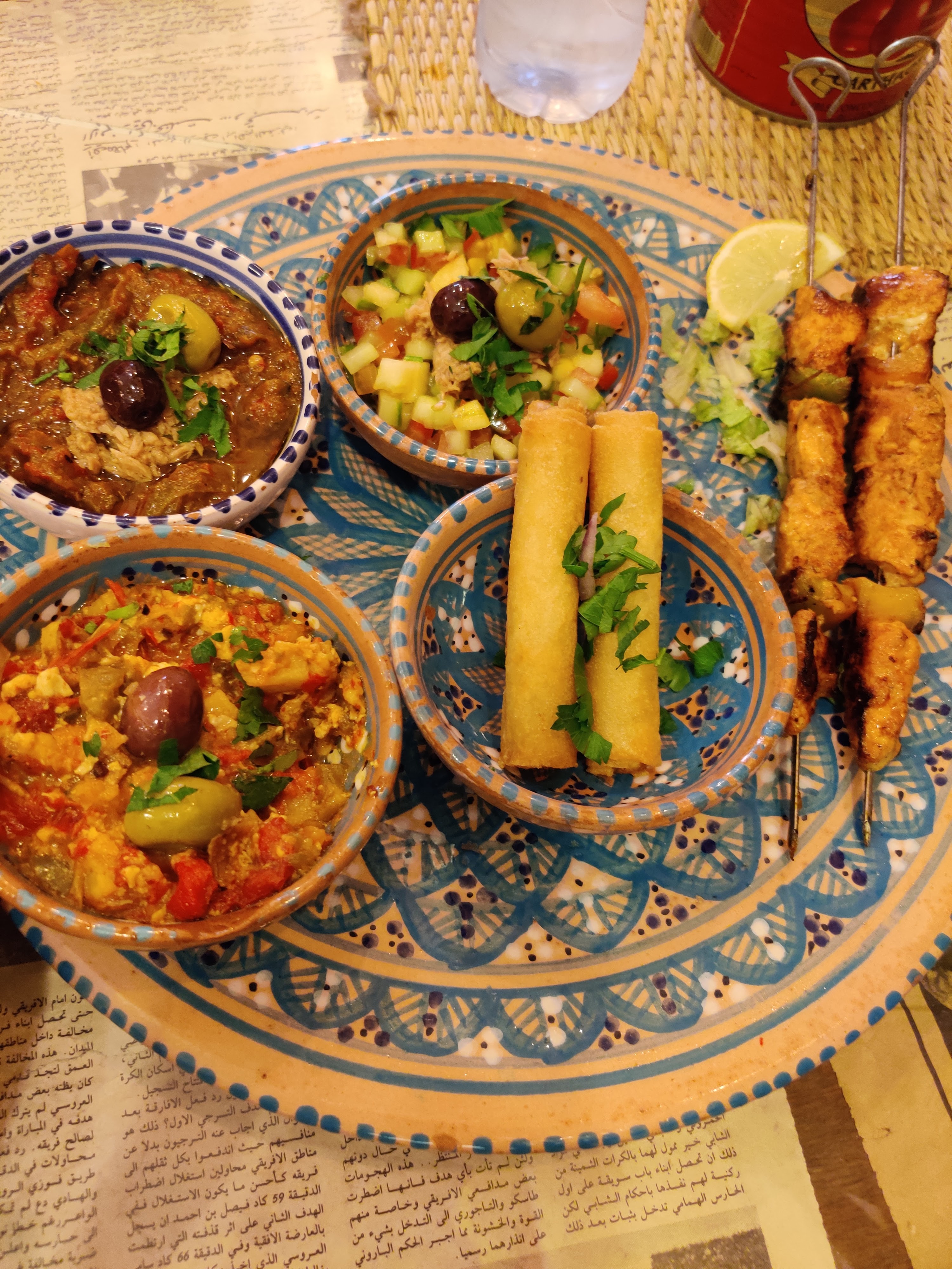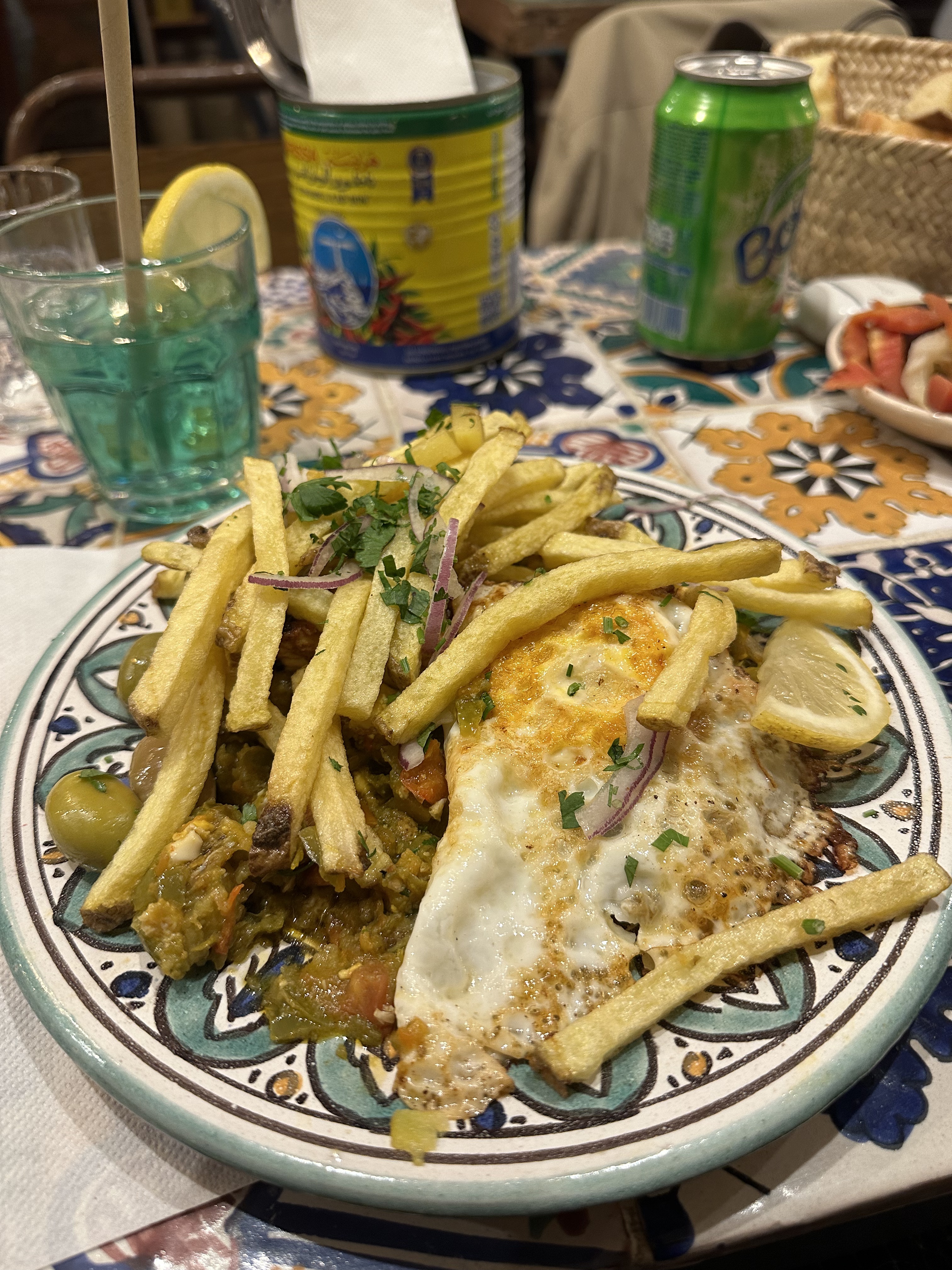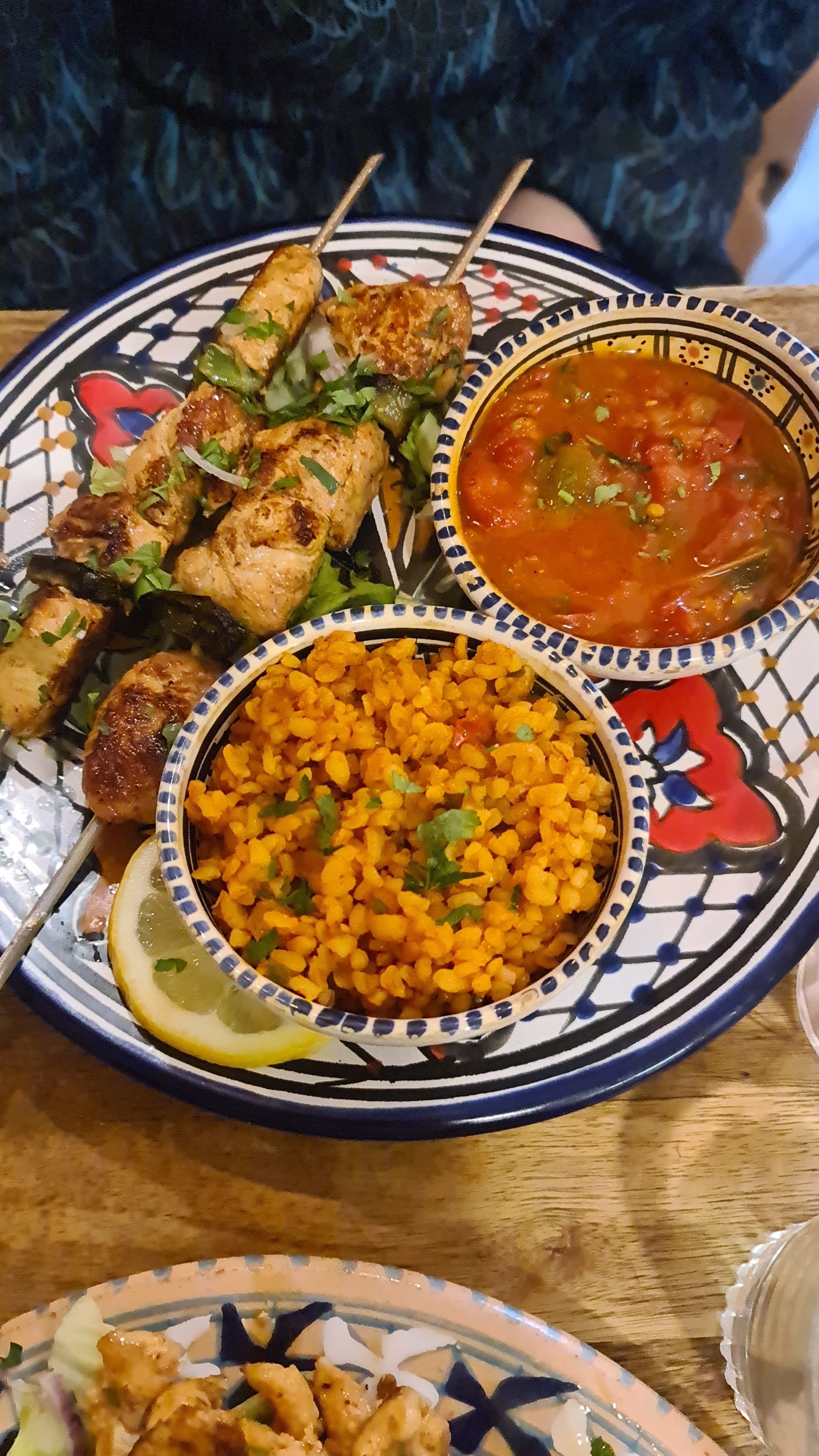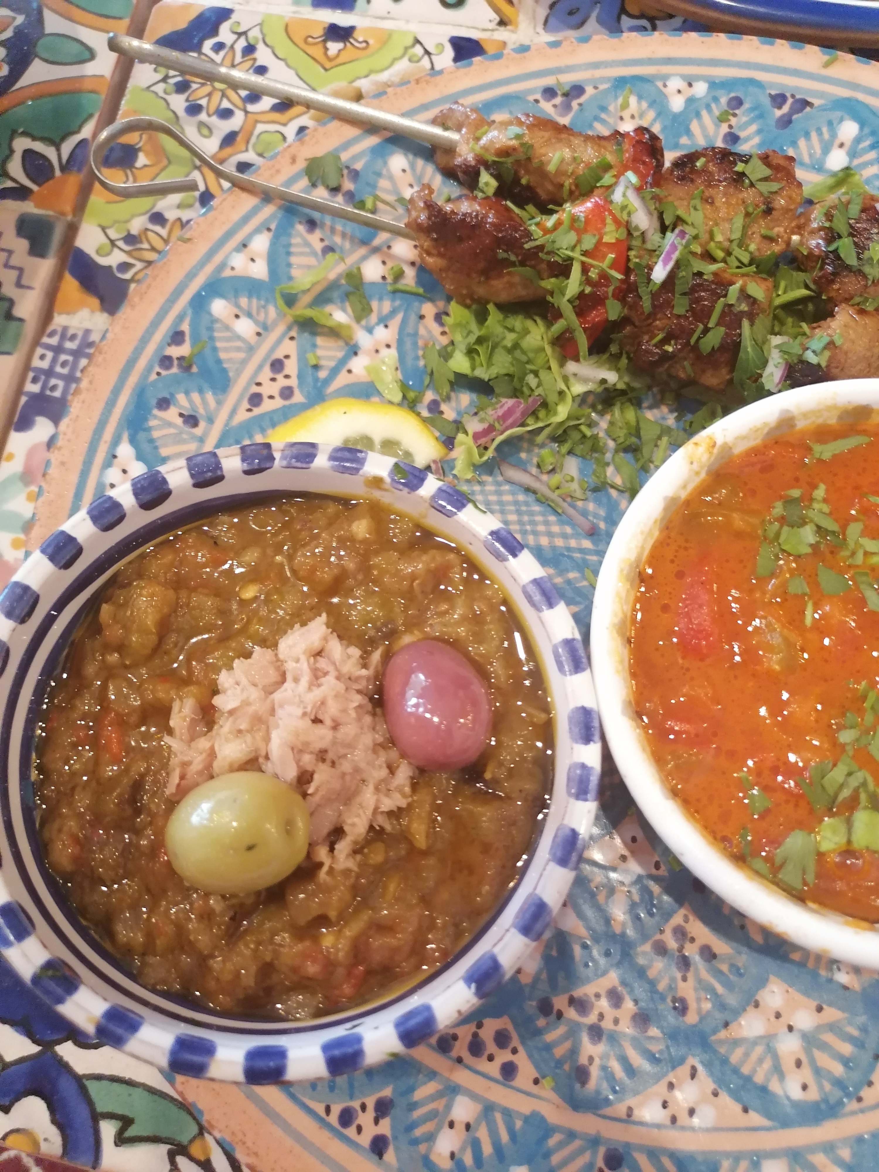 La décoration est magnifique on voyage vraiment en Tunisie. A chaque regard une nouvelle histoire ou découverte. Salade tunisienne, bricks délicieuses. Les chapatis délicieux également. Seul bémol les frites qui ne sont pas arrivées chaudes alors qu’elles étaient faites maison, on aurait adoré les manger chaudes. Portions très gourmandes.