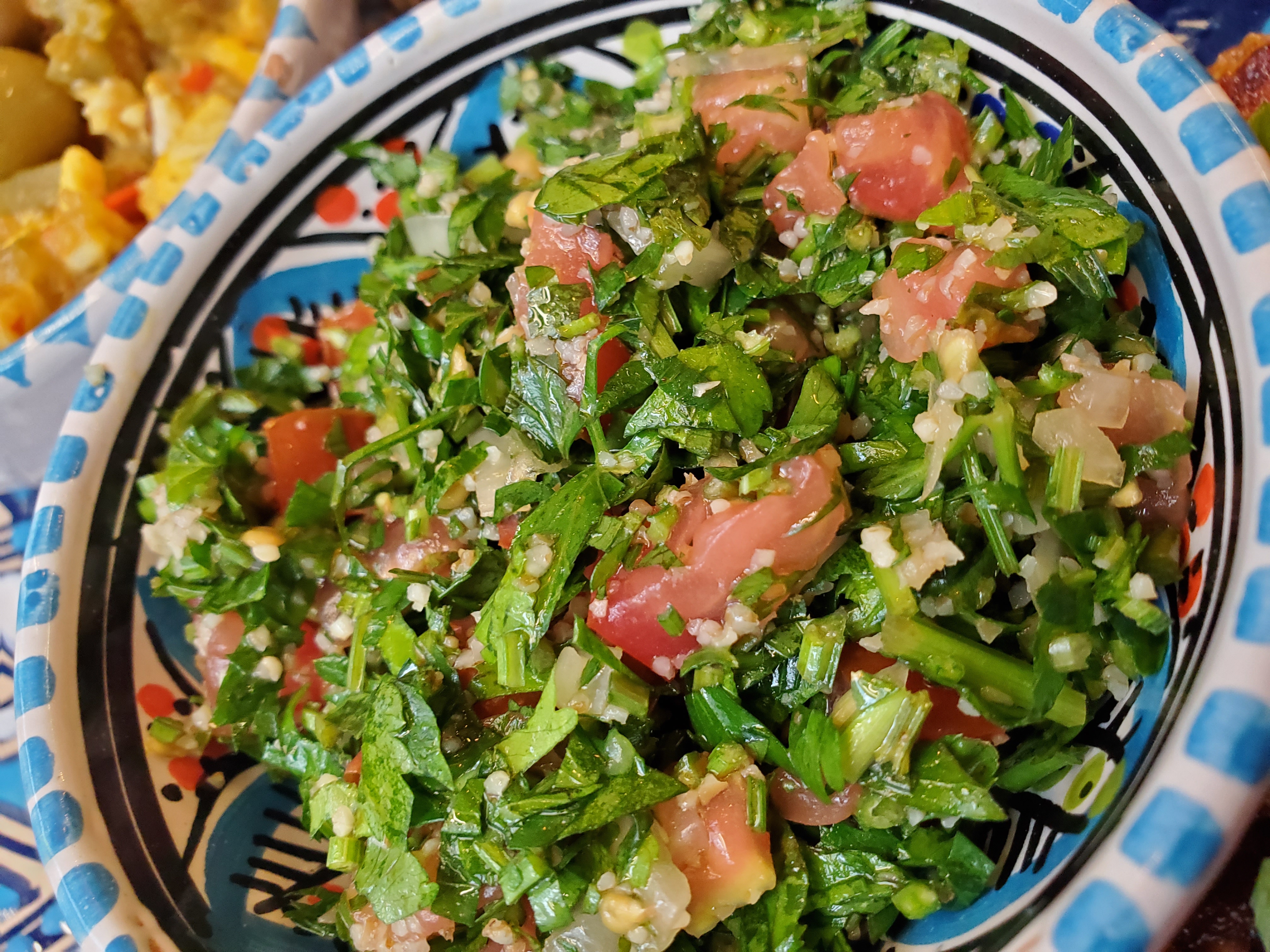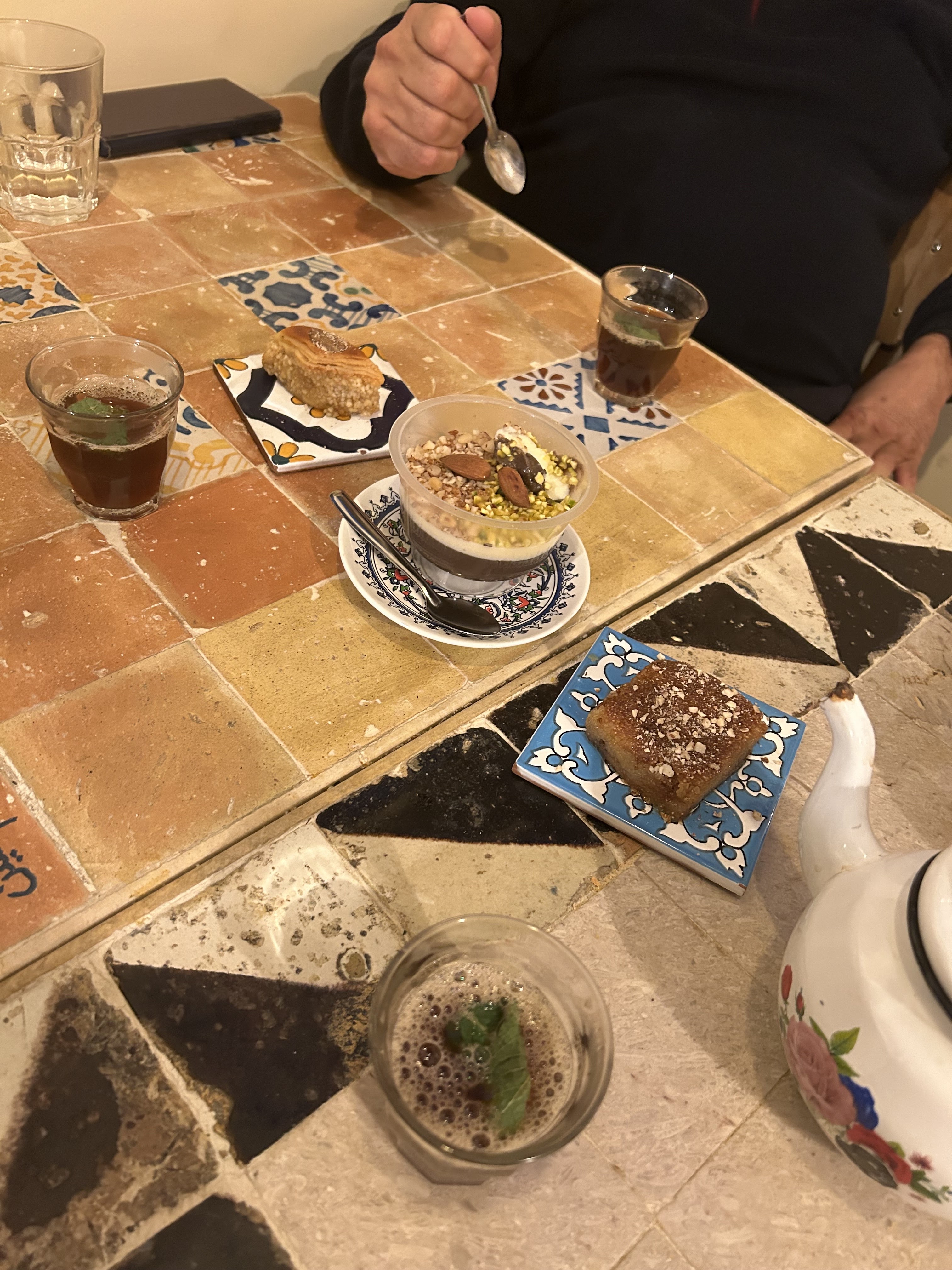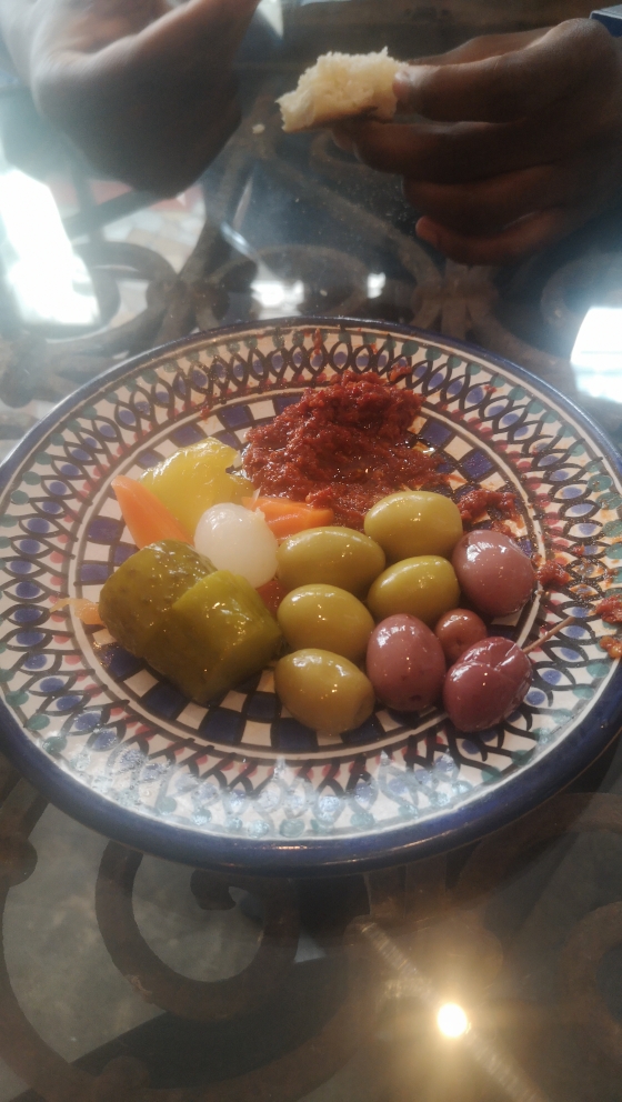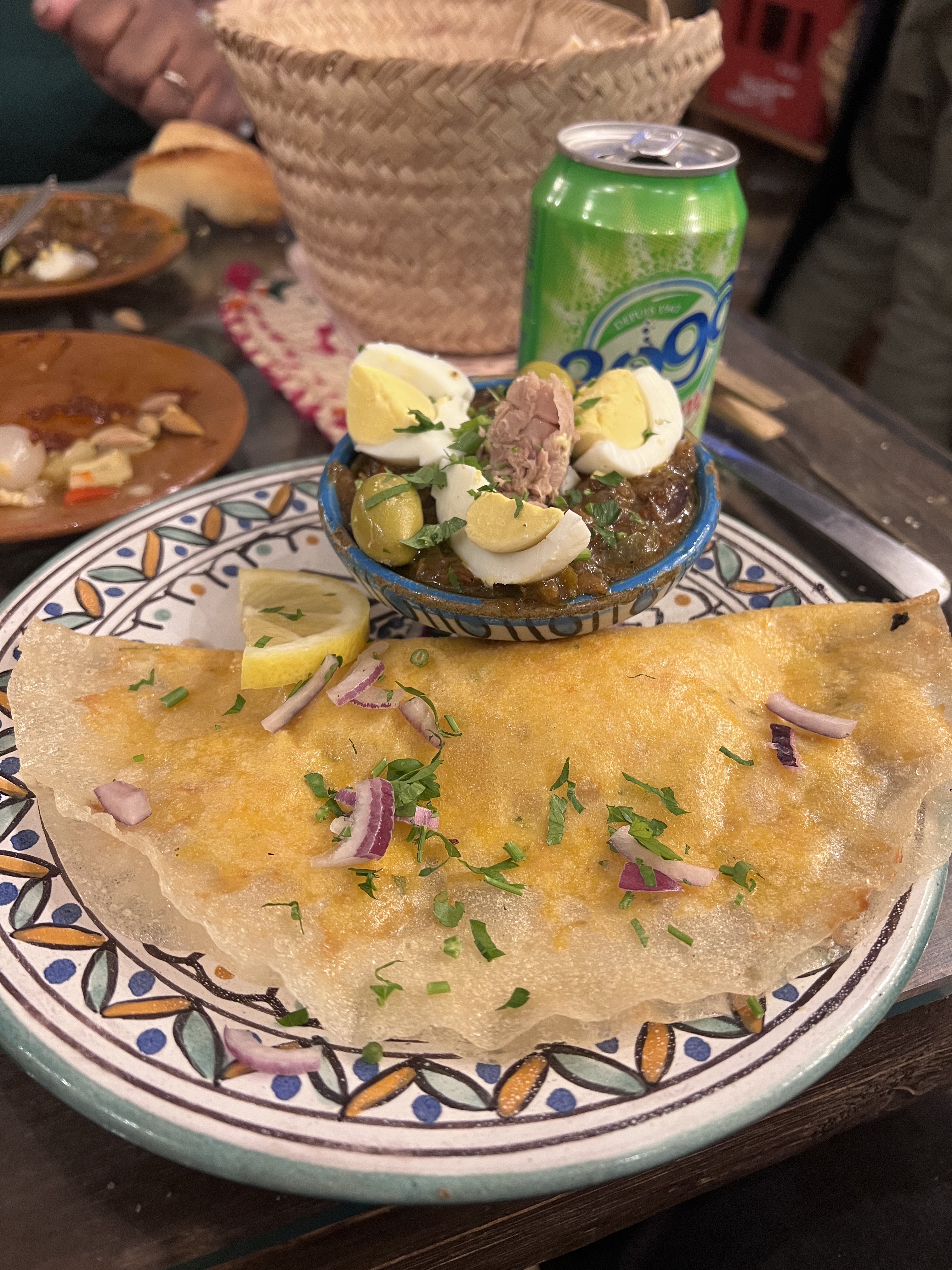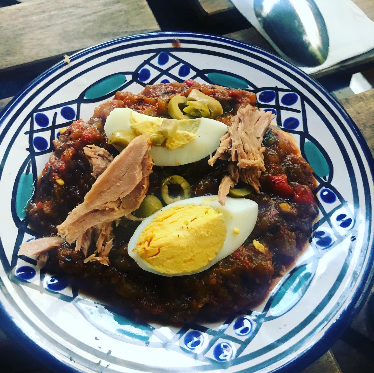 Délicieuses bricks dorées au jaune d'œuf parfait, fricassés moelleux et savoureux (olives, thon, oignons, tomates, harissa maison et je crois petits cubes de pomme !), gâteaux frais et fondants, top du top de la gastronomie tunisienne... Je reviendrai !!!