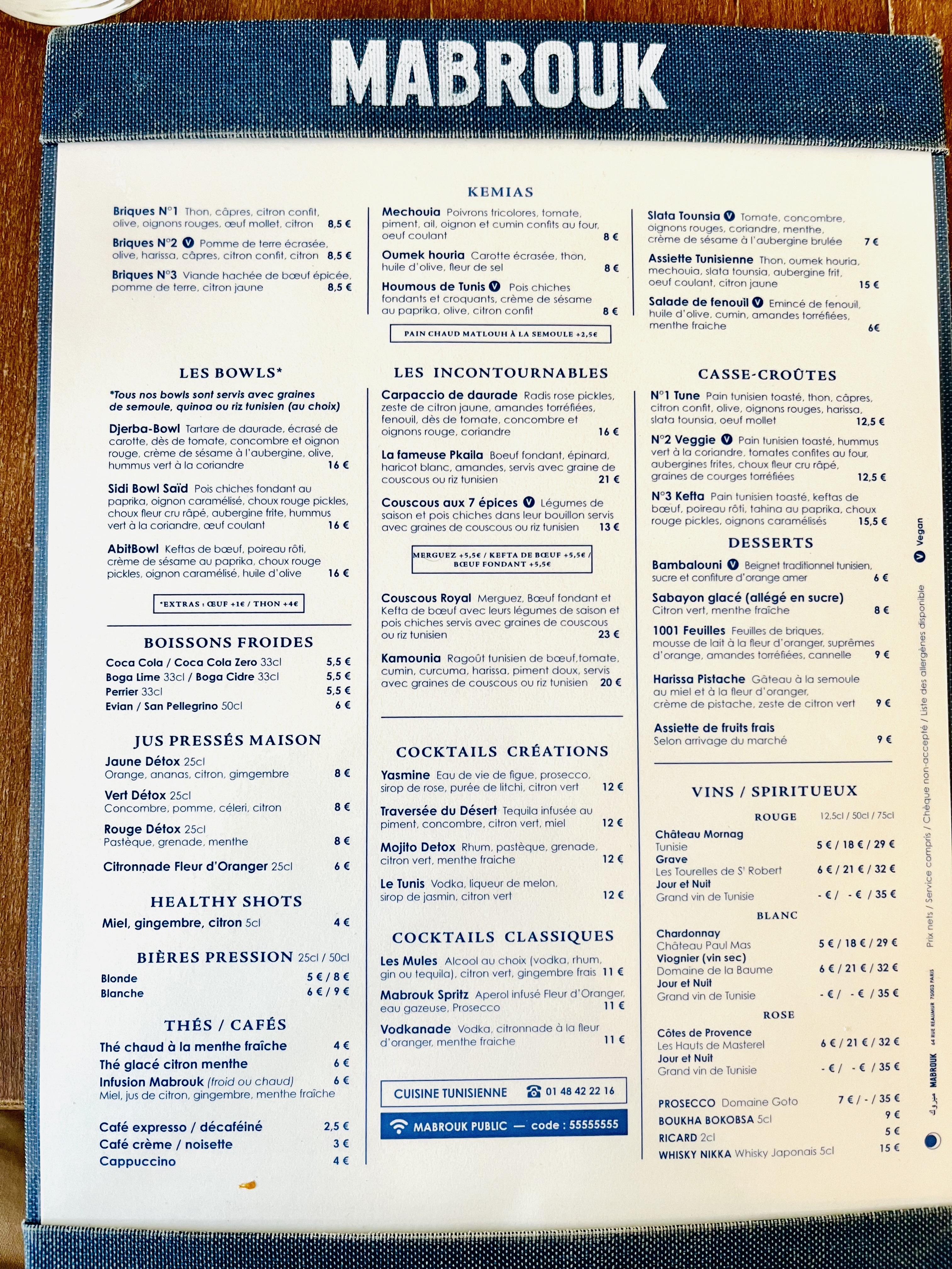 MA CANTINE : passage obligé à chaque venue à Paris, le choix automatique quand on veut bien manger dans un cadre tout bleu et joli à Paris tout en se dépaysant. OUI MABROUK !