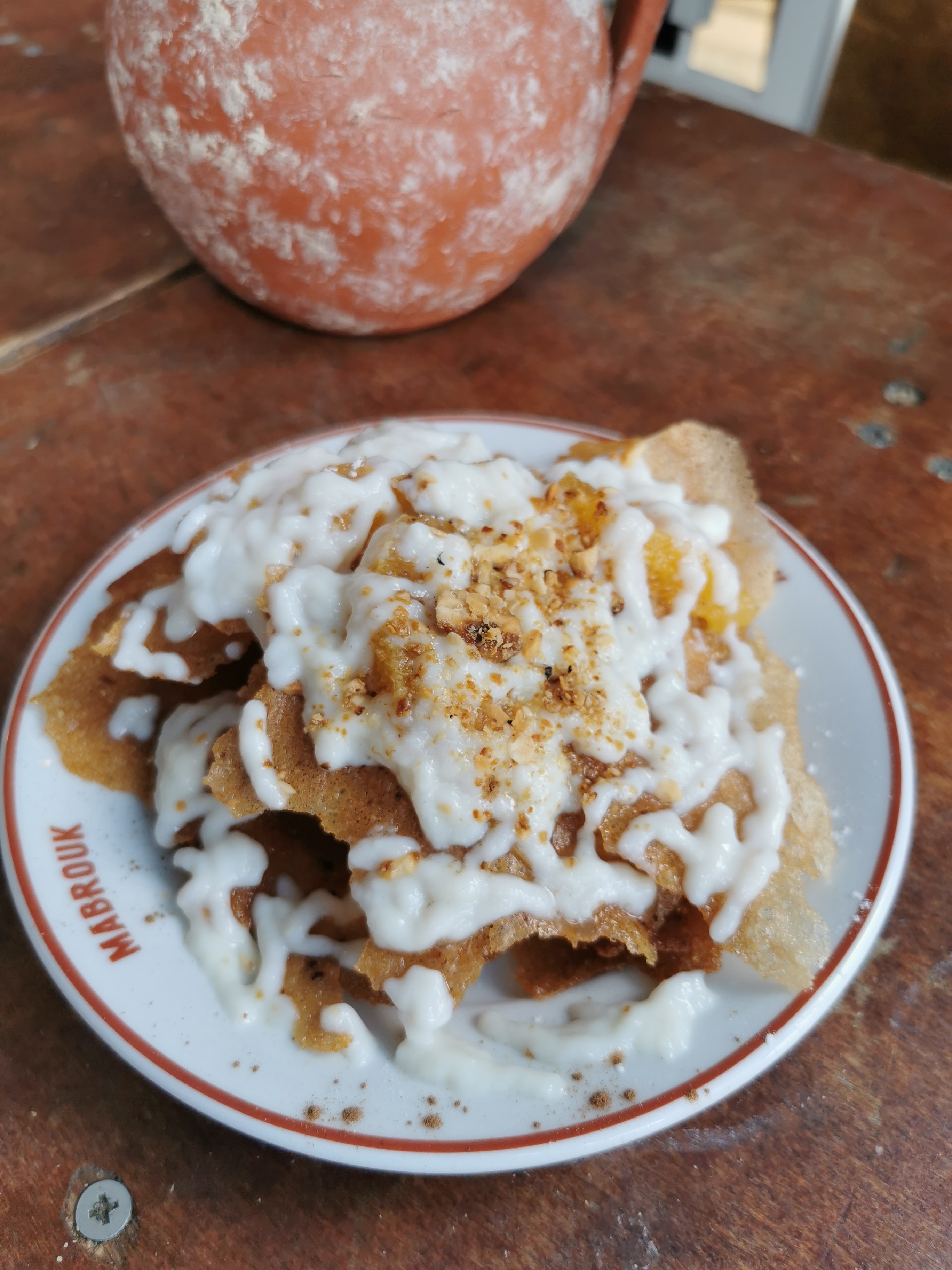 Pour notre passage pendant le mois de ramadan, on a choisi le menu iftar avec le plat du jour et voilà ce qu’on a mangé : - Chorba avec de la viande: dommage qu’il y avait un peu trop d’huile sinon le goût est au rendez-vous - Briques n1: un classique thon et œuf (correctes) - Briques n2: pomme de terre à l’harissa (huileuses, sans épices et pas de goût d’harissa) - Assiette tunisienne: un mélange de salades tunisiennes savoureuses généreux et copieux - Thé à la menthe et des petits morceaux de gâteau: super bon ce gâteau ! Et le thé vert idéal à la fin d’un repas Pour résumer, le menu ne vaut pas son prix et c’était un peu décevant. Néanmoins, l’ambiance était agréable et le personnel super accueillant. Une mention spéciale au monsieur derrière le bar qui était très sympathique serviable.