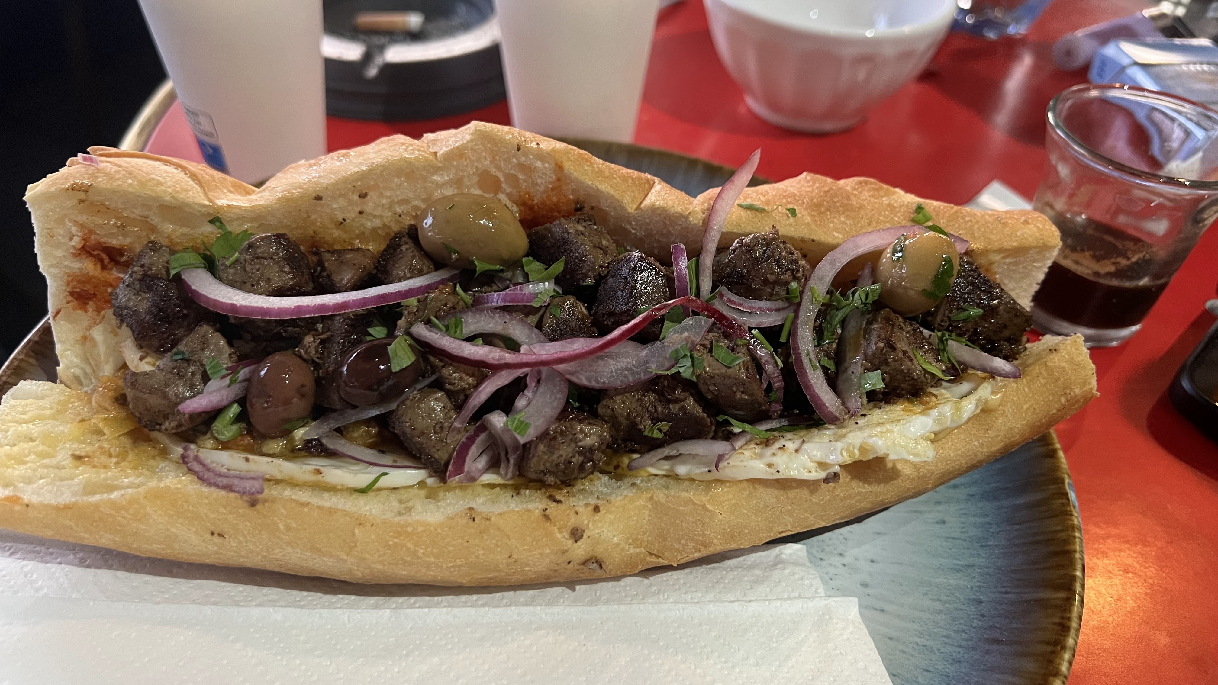 Très bonne ambiance avec de très bonnes spécialités tunisienne . Personnellement je prends un sandwich au poulet il est excellent . Serveur aimable et service rapide . Par contre en terme de chicha ils proposent pas de kaloud , dommage mais je recommande tt de même !