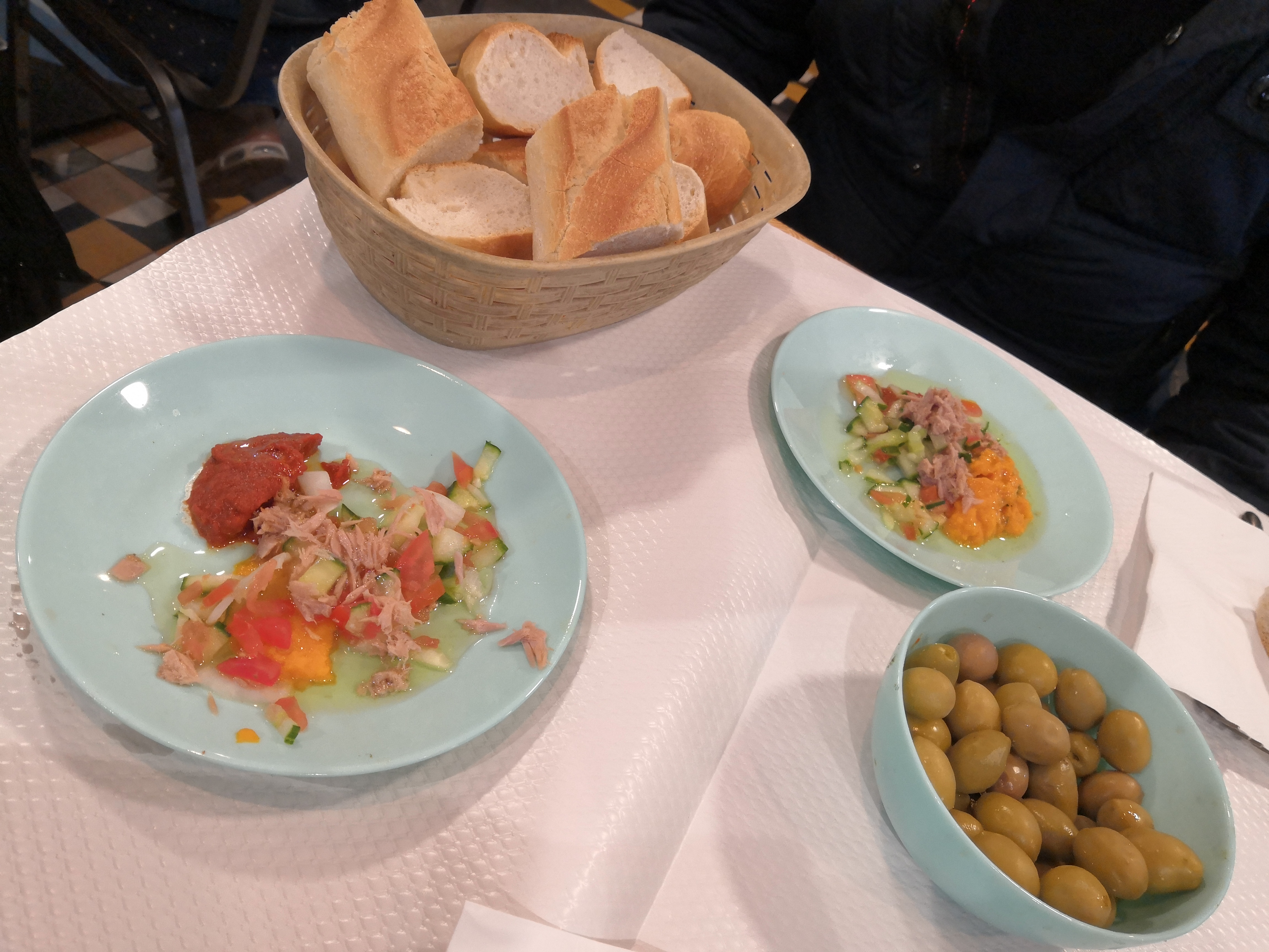 C’était pas ouf, déjà ils te servent une mini entrée qui est « offerte » (dont je vais comprendre l’intérêt à la fin) avec un bol d’olives verte déjà entamé (genre des noyaux dans le fond…) je me suis dis bon! Ils veulent lutter contre le gaspillage (j’ai jouer la témérité j’ai mangé) puis au moment des choix (déjà on aurait dit qu’il ne connaissait pas la carte du restau), j’ai demandé à 3 reprises un plats différents parce qu’on me fait comprendre sans véritablement le dire (???) qu’ils ne le servaient plus, au bout de la 4e fois je suis lassée et lui demande donc ce qu’il reste pour abréger, il me propose un plateau de daurade grillée avec frites et calamars… Wallahi y avait 2 frites en duel (3 grand max) sur le plateau, et 2 minis calamars frits, la daurade mal cuite bref 20e le truc pour une quantité et qualité ridicule sachant qu’on est à Aubervilliers, d’habitude je mange super bien et copieux dans les coins malfamés mais pour le coup c’était pas trop ça. Parlons du service: vous voyez comment est gérer ce quartier? Et bien voilà vous avez la réponse. Pourtant c’est un beau restaurant qui je pense a du potentiel. Bien évidemment l’ambiance ultra bruyante et l’étroitesse du lieu je m’y attendais.