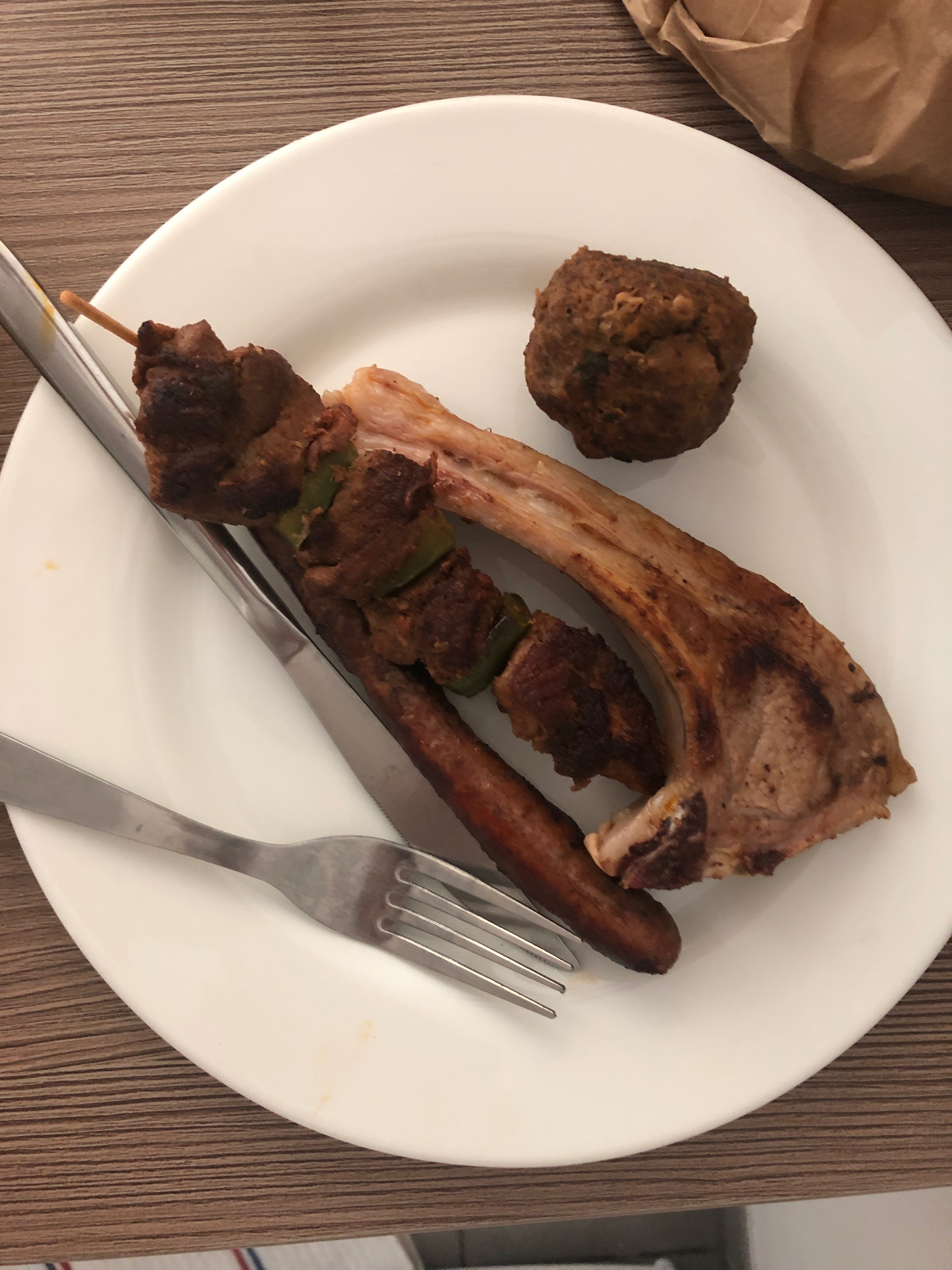 boulette de kefta pas cuit, merguez côtelette d’agneau sans goût même pas salée et trempé dans la sauce si ont peu dire une sauce c’était plutôt de l’eau c’était vraiment degueuelasse. Alors les frites sans sel et sec et la salade pas assaisonné. Je comprend pas qu’ont vend de la bouffe mal assaisonnée et pas cuit sans goût. Tout est parti à là poubelle. Sois disant tout est cuit au feu de bois mdrrr c vraiment prendre les gens pour des cons. Je recommande pas du tout!!!