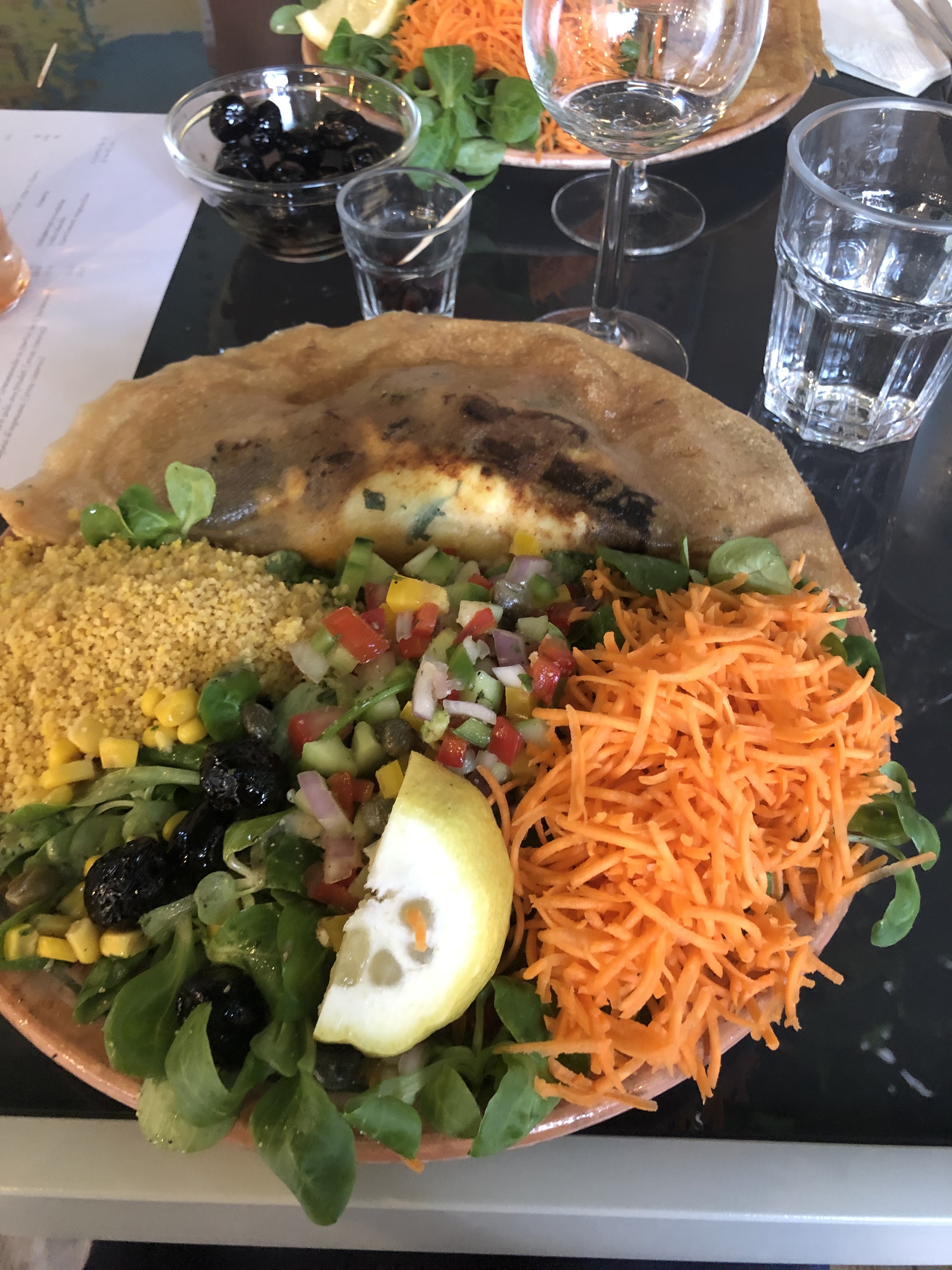 Un très bel accueil de Karine et la très bonne cuisine de son mari. Un restau joliment décoré. Un agréable dîner. Un bon couscous sucré salé. Une mention spéciale pour l’assortiment de gâteaux. Et même si on a bien mangé il reste toujours une petite place pour ces douceurs sucrées