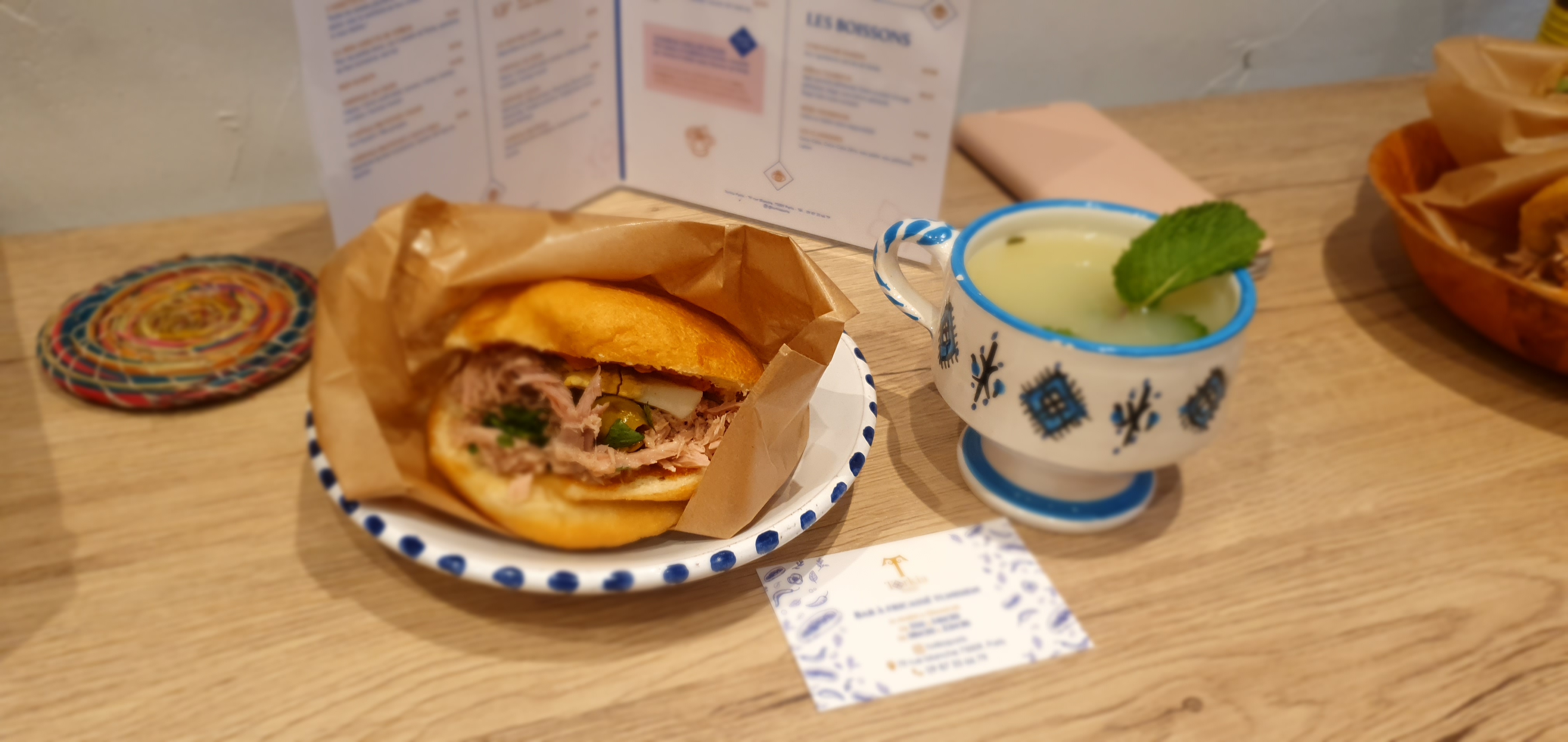 Mais quelle belle découverte que ce petit endroit aux senteurs tunisiennes Que ce soit les fricassés salés comme sucrées ou les gâteaux tunisiens..sans parler du thé à la menthe tout est délicieux Torkia et son large sourire est une hôte exceptionnelle… Merci 🙏🏻 pour tout….Torkia