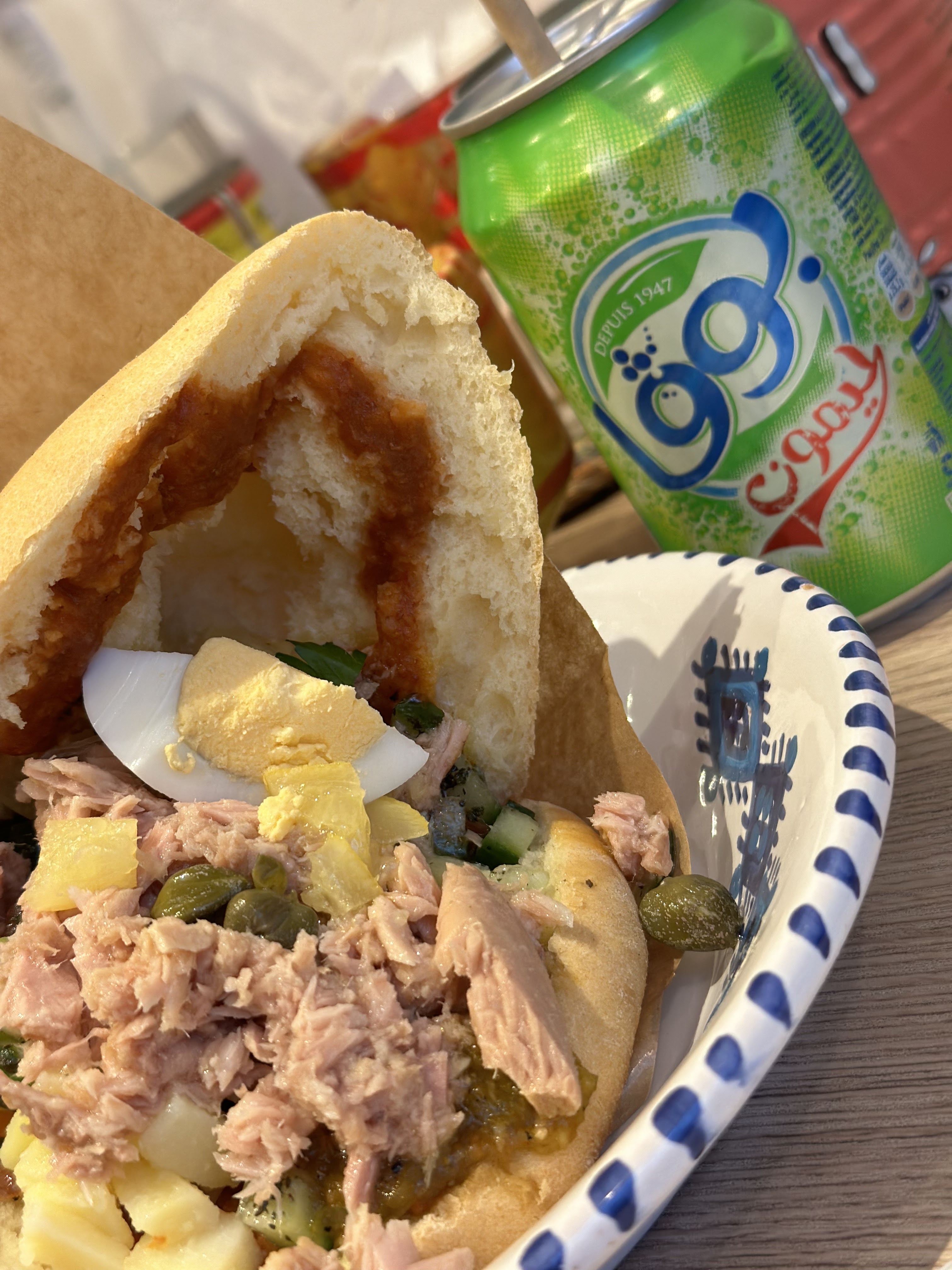 Une belle ambiance tunisienne dans le quartier de la place Blanche qui nous change des grandes enseignes commerciales. Fricassé tout frais 6,9e