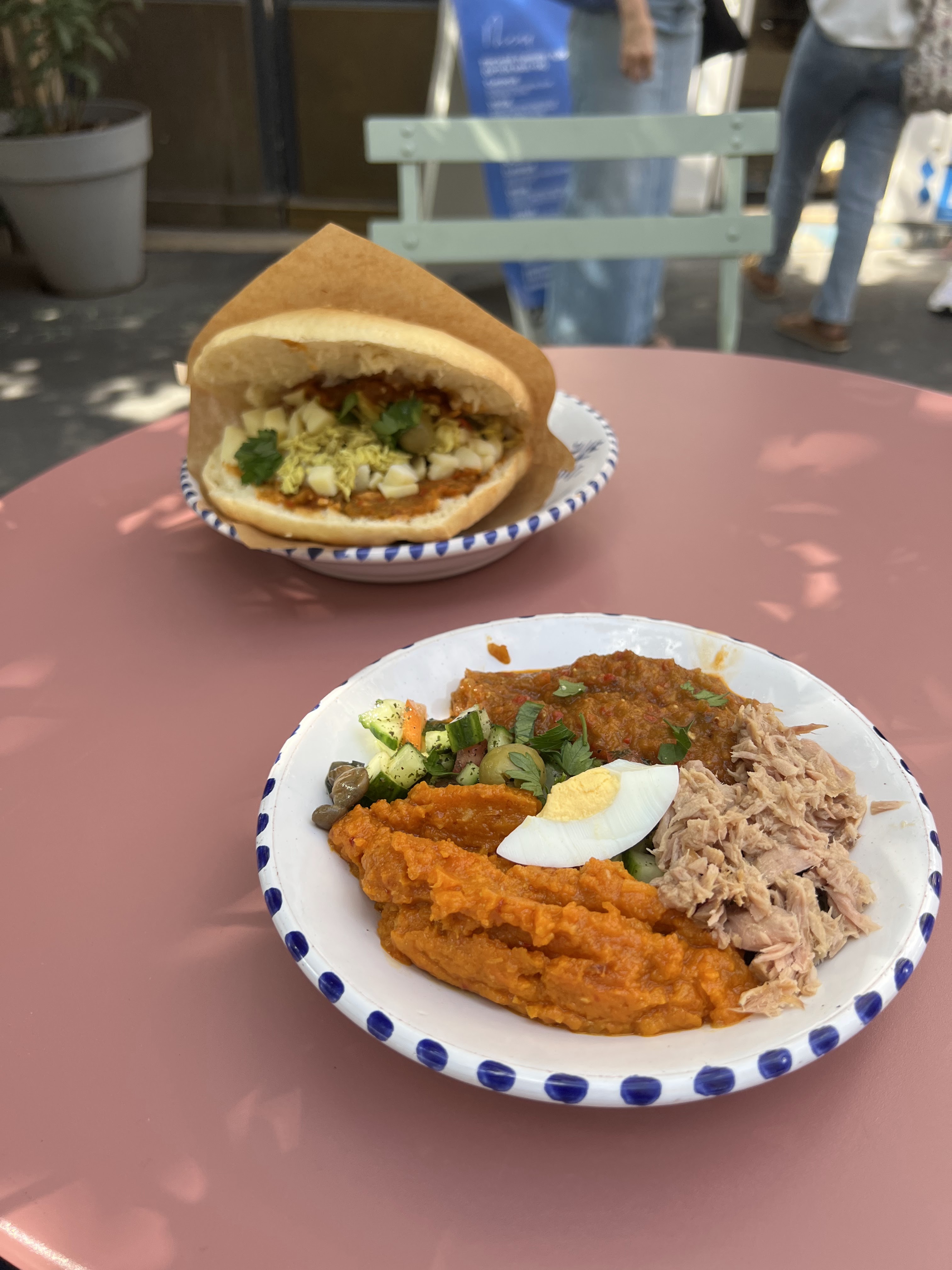 C'est délicieux ! Un bar à fricassé mais pas que ! Perso, j'adore l'assiette de Torkia (salade tunisienne composée de plusieurs recettes comme sur la photo) le pain maison est incroyable et la citronnade maison un délice. Je recommande vivement !